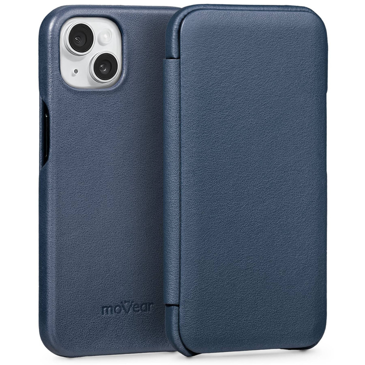 moVear flipSide S Ledertasche für Apple iPhone 13 (6.1") | Glatte Leder, Handy Hülle book type (Blau)