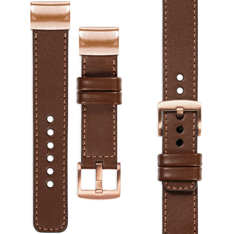 moVear Prestige C1 Lederarmband für Garmin QuickFit 20mm (Fenix / Instinct - 43/42/40mm) | Dunkelbraun, elegante Roségold Nähte