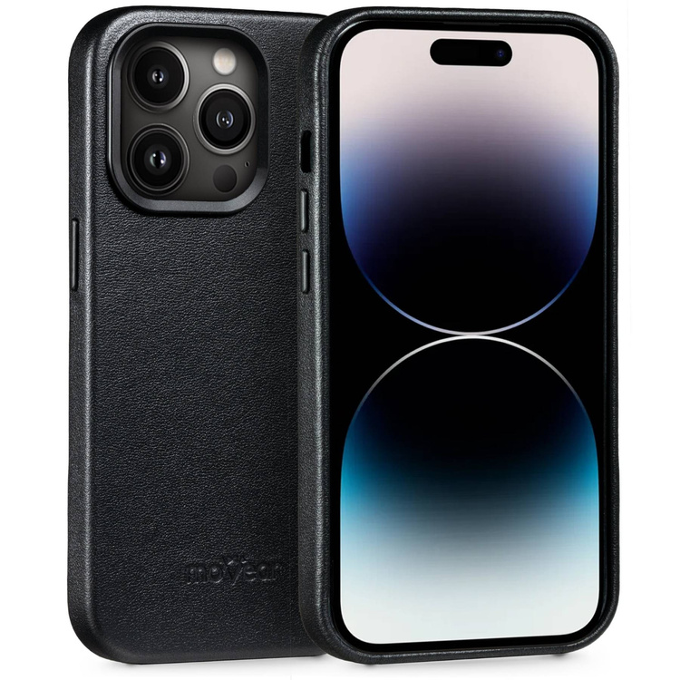 moVear [PRODUCT_MODEL] Lederrückseite für Apple iPhone 14 Pro Max (6.7") | MagSafe kompatibel, Glattleder (Schwarz)