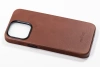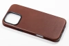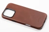 Leather Dark brown premium back cover for iPhone 16 Pro. Compatible with magSafe. Edge protection on 4 sides and an elevated lens frame protect the phone well. The case impresses with its precise finish and attention to every detail.