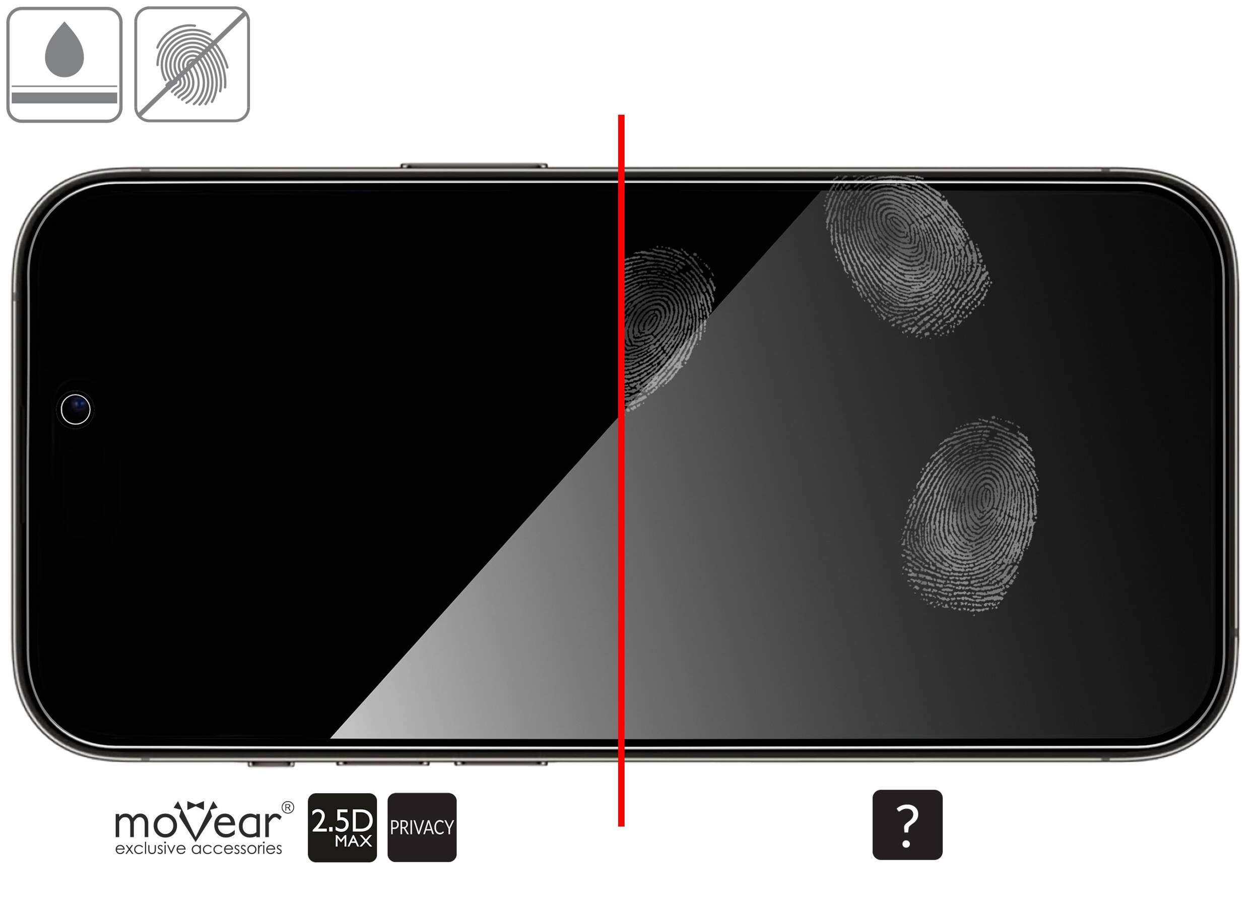 - 2 pcs. moVear GLASS mSHIELD 2.5D MAX privacy tempered glass for the iPhone 14 Pro Max (6.7")