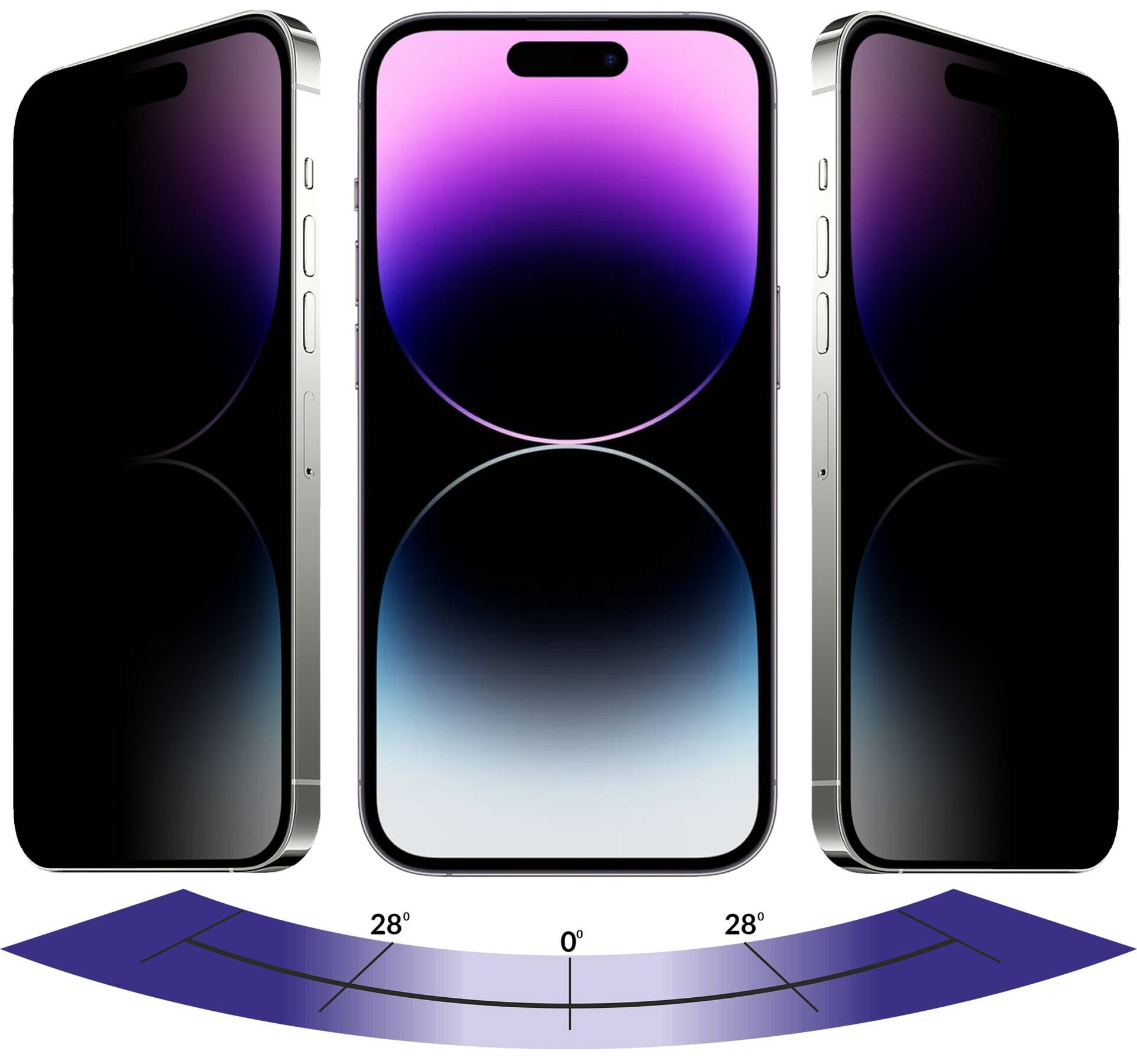 The applied special P28™ polarizing filter reduces the viewing angle of the content displayed on the Apple iPhone 14 Pro Max (6.7") screen. Thanks to this special technology, people sitting next to you will not be able to see the contents of your phone's display. The moVear privacy glass is a simple and effective protection of privacy.