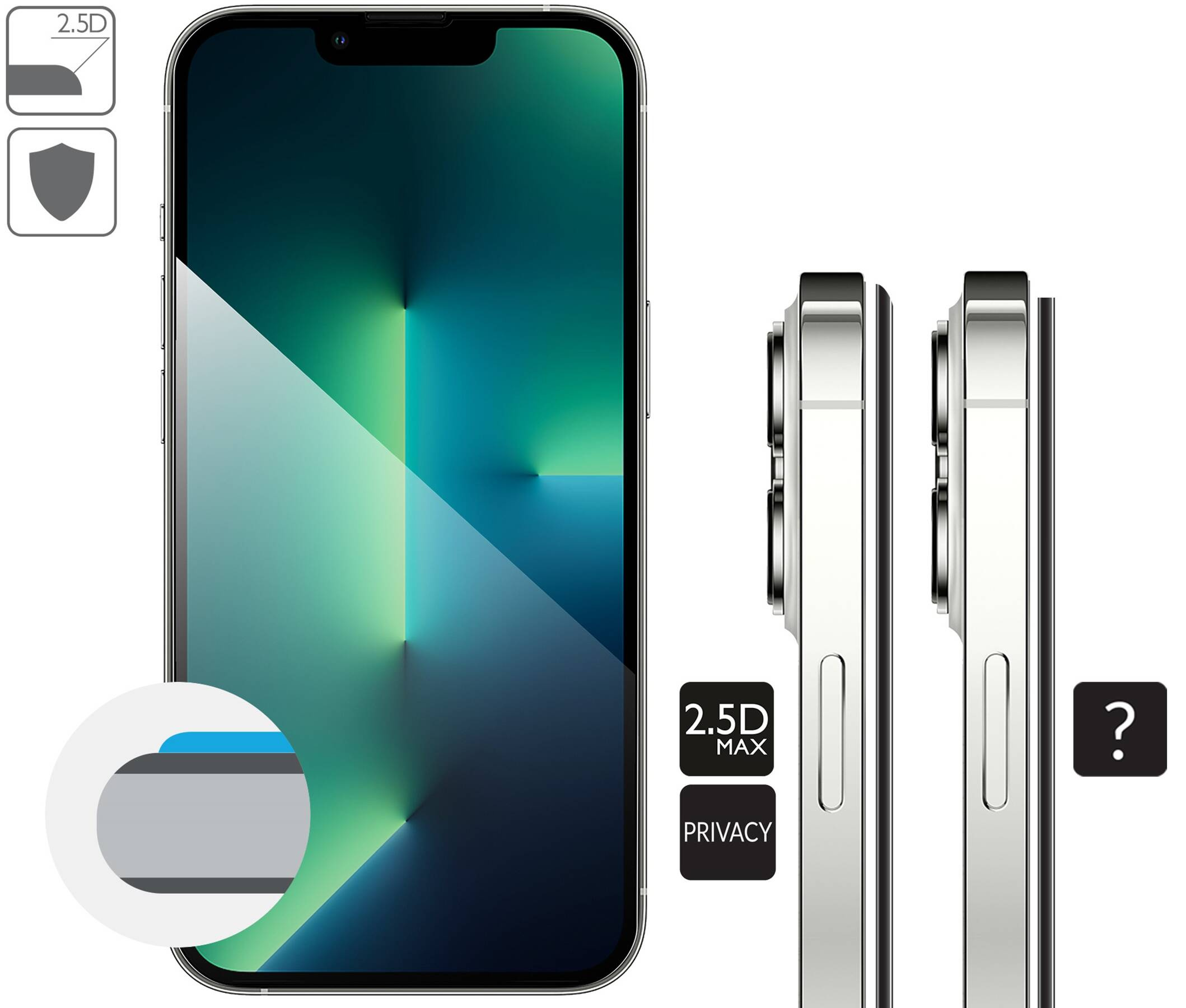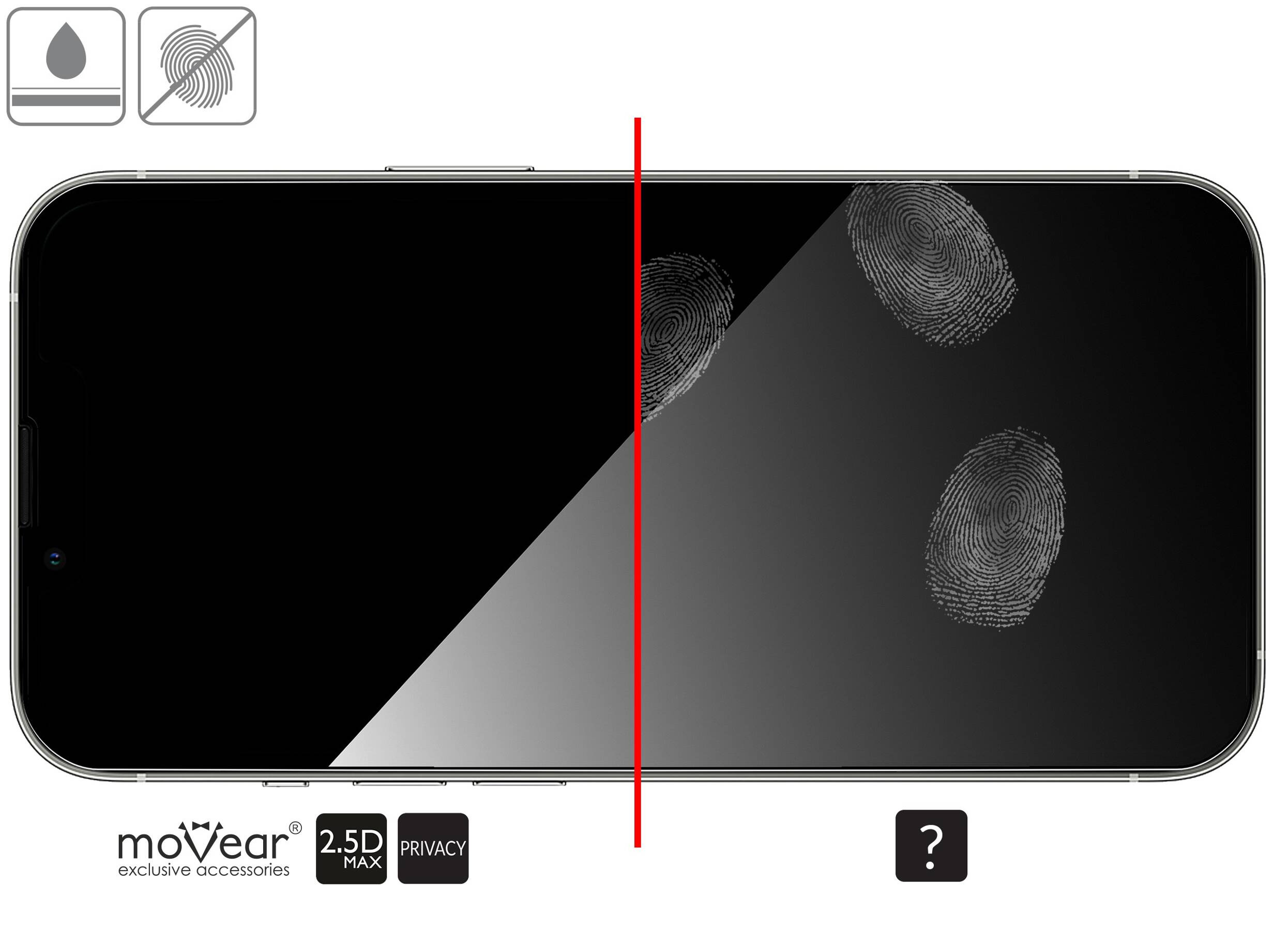 - 2 pcs. moVear GLASS mSHIELD 2.5D MAX privacy tempered glass for the Apple iPhone 16e / 14 / 13 / 13 Pro (6.1")