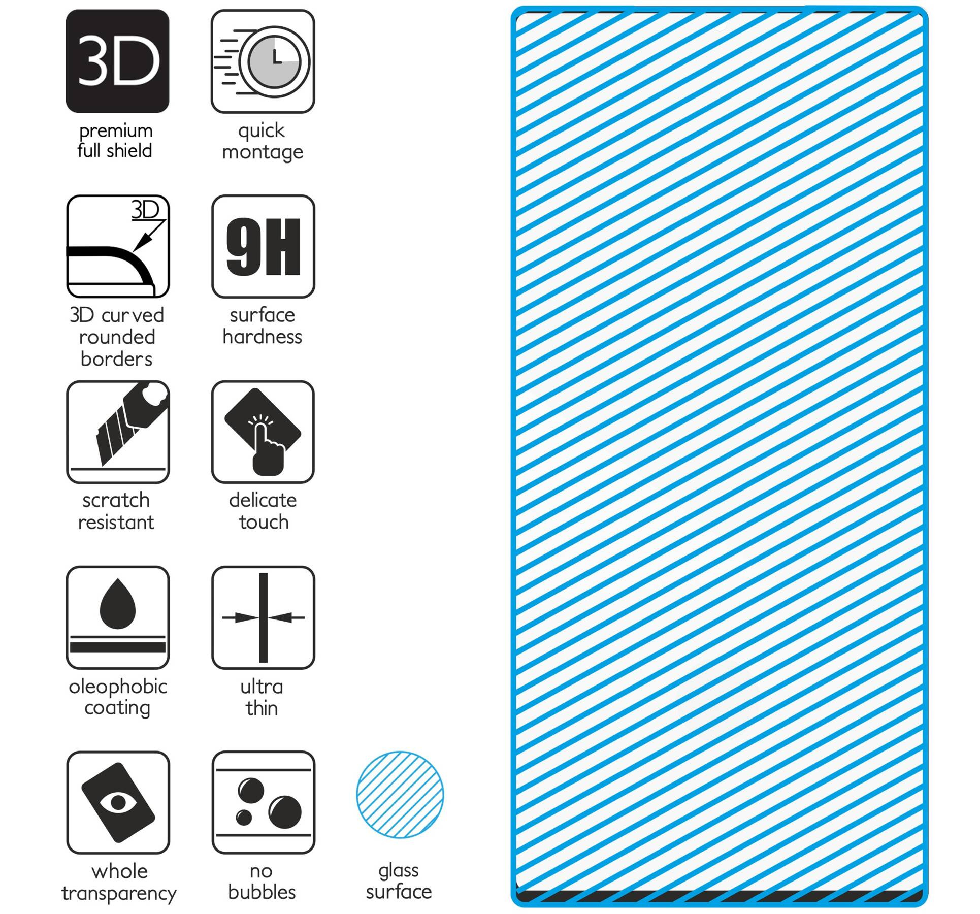 The moVear GLASS mSHIELD 3D glass has rounded edges made in 3D technology, thanks to which it provides better protection of the screen and reduces the risk of damage to the display when the smartphone falls.