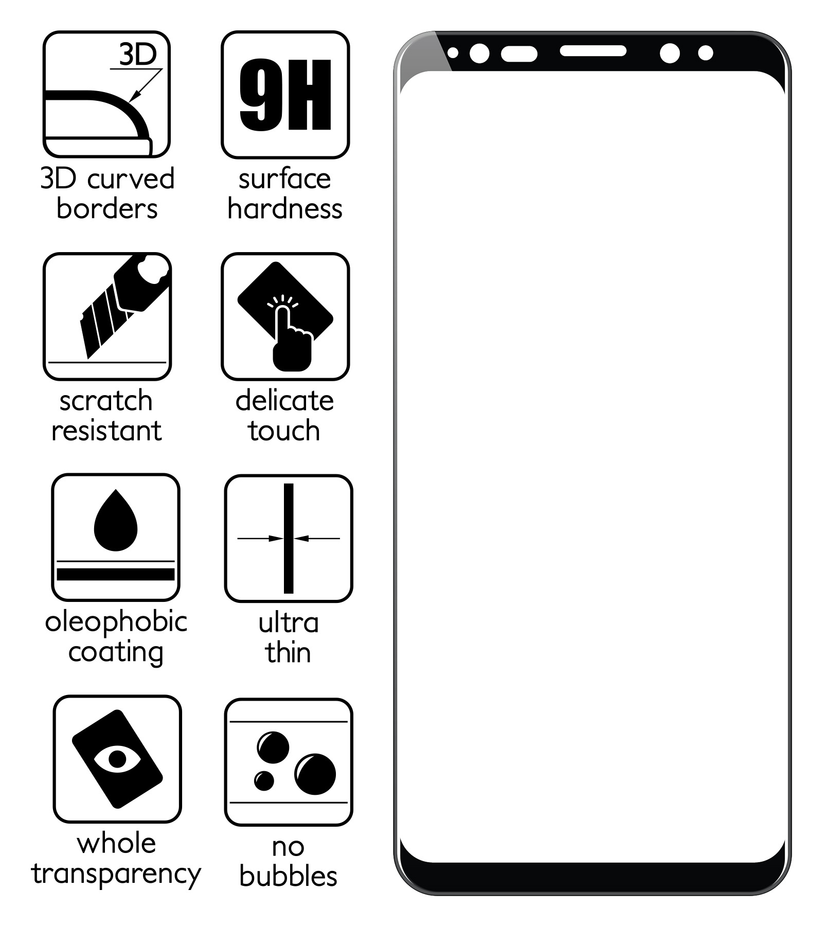 Pay attention to the model and size of the smartphone screen. Glass moVear GLASS mSHIELD 3D only compatible with Samsung Galaxy S9 z ekranem o przekątnej 5.8 cala.