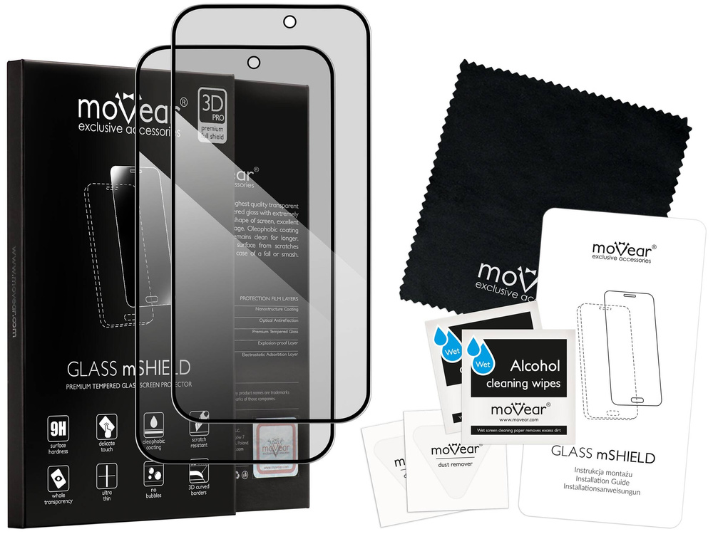 moVear GLASS mSHIELD 3D PRO privacy Tempered glass for Apple iPhone 14 Pro (6.1"), full screen, with privacy filter 2 pieces of glass in the package