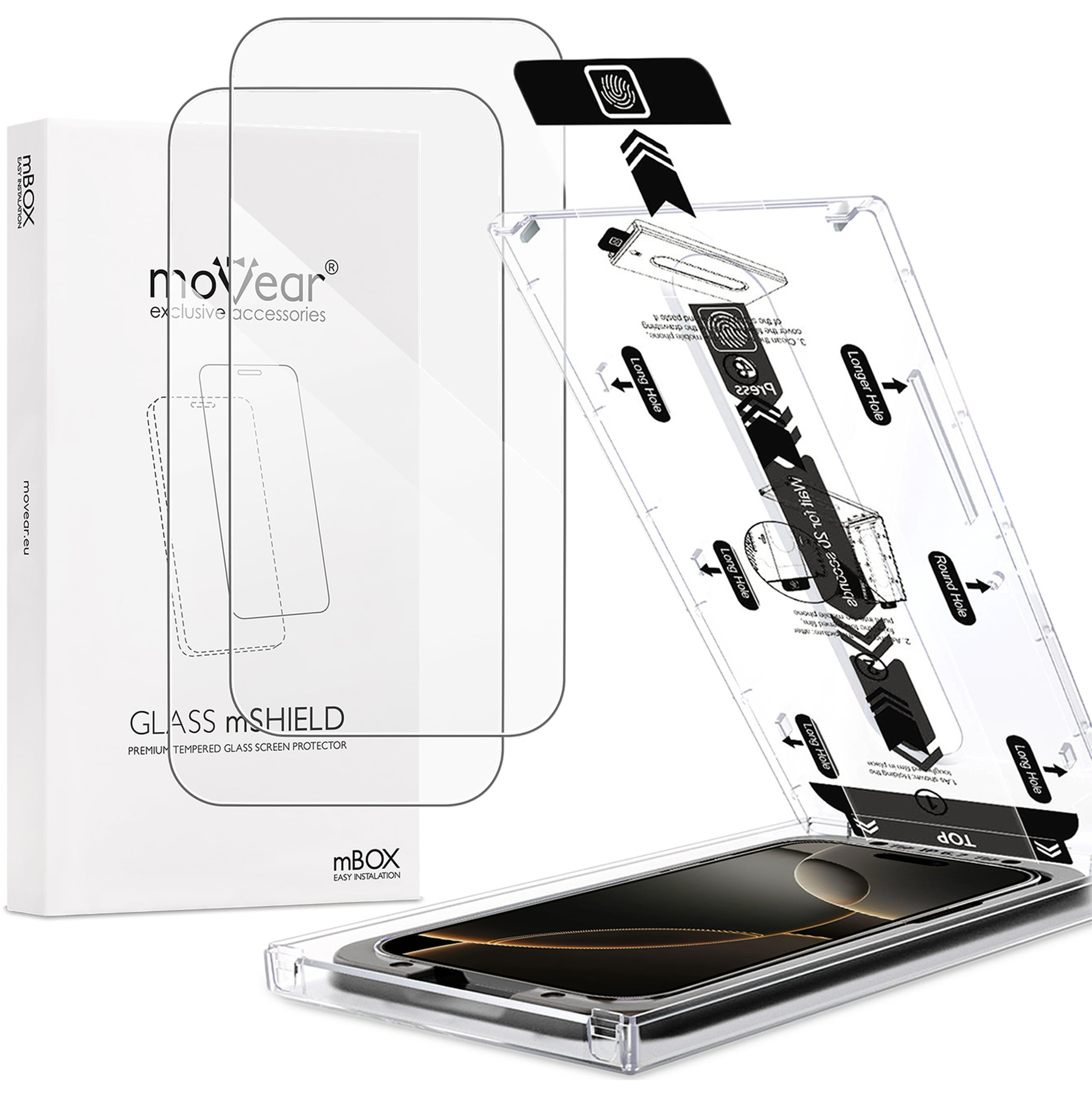 moVear mBOX GLASS mSHIELD 2.5DTempered glass for Apple iPhone 17 Pro / 17 / 16 Pro (6.3"), with easy installation system2 pieces of glass in the package