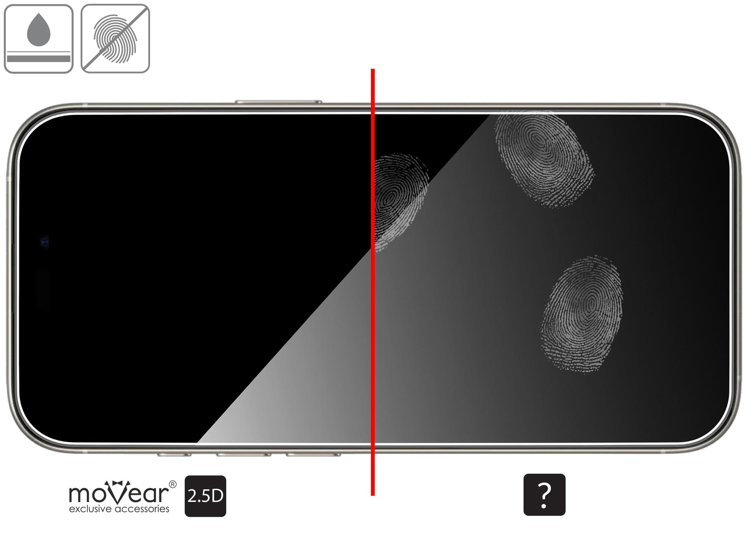 - 2 pcs. moVear mBOX GLASS mSHIELD 2.5D tempered glass for the Apple iPhone 17/16 Pro / 17