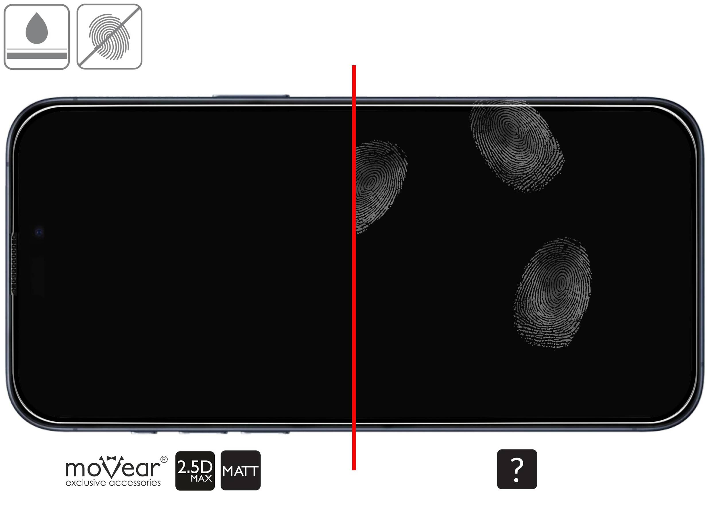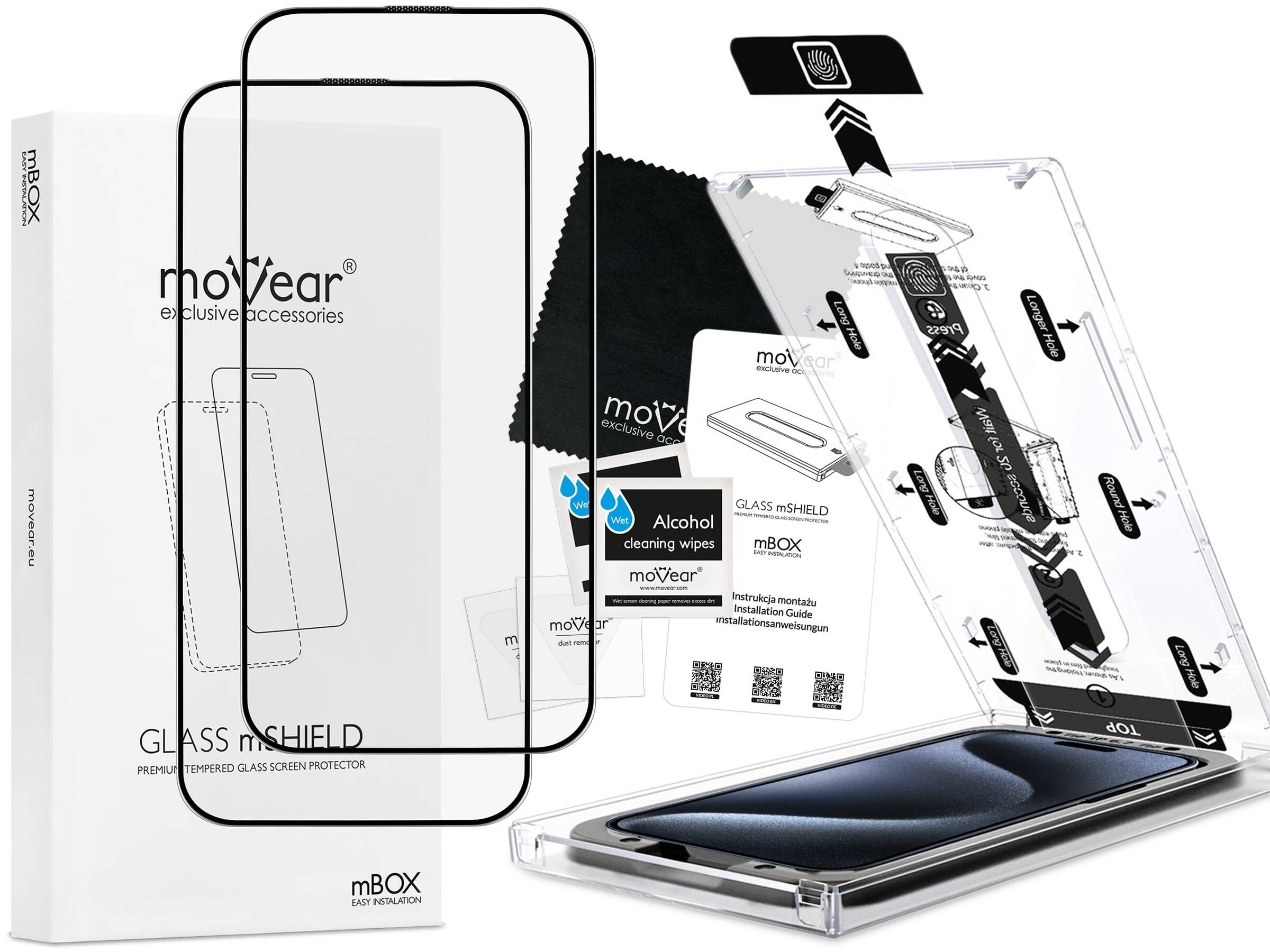 - 2 pcs. moVear mBOX GLASS mSHIELD 2.5D MAX MATT tempered glass for the iPhone 15 Pro Max