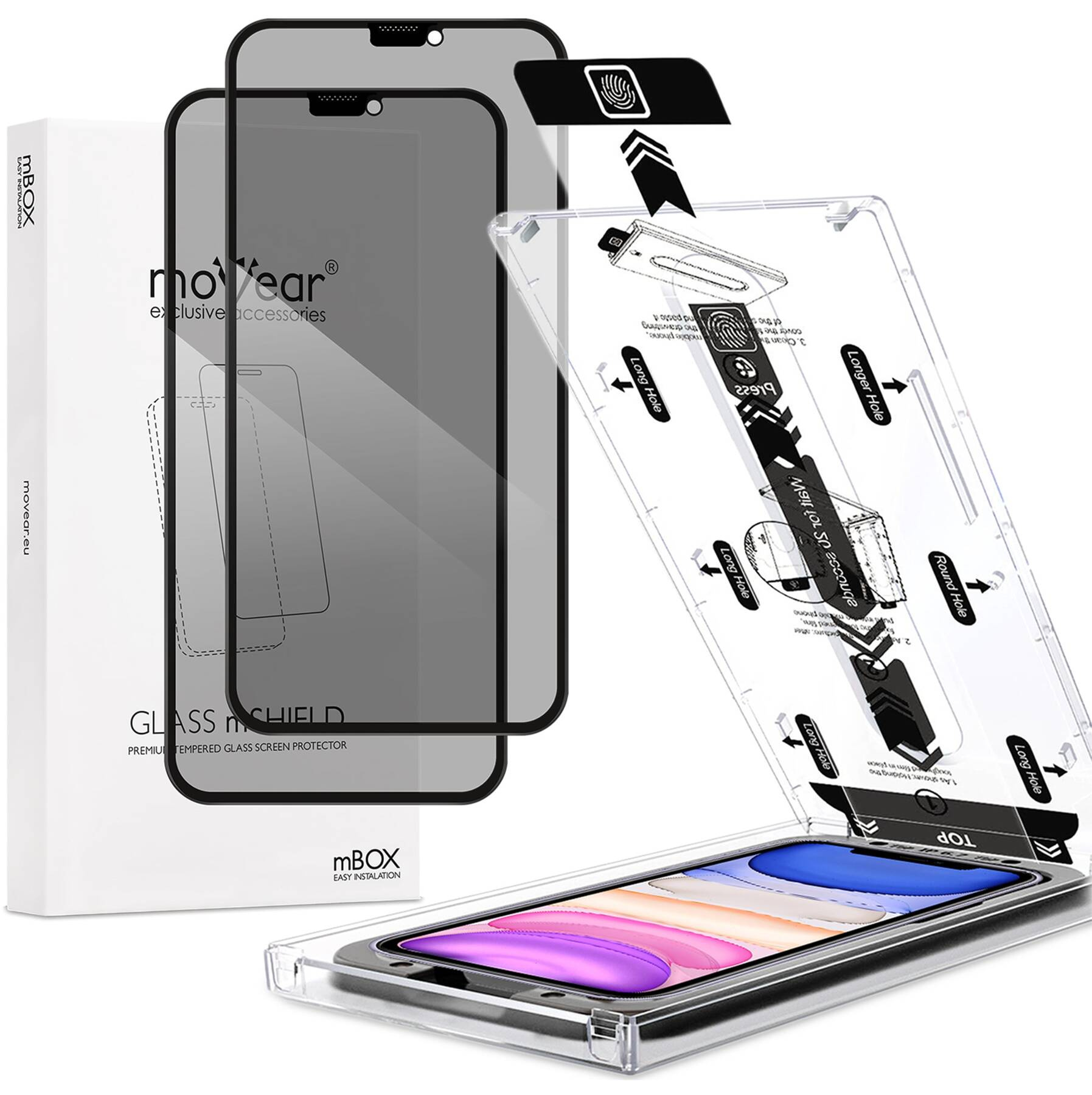 moVear mBOX GLASS mSHIELD 2.5D MAX privacyTempered glass for Apple iPhone 11 / Xr (6.1"), with applicator, privacy filter2 pieces of glass in the package