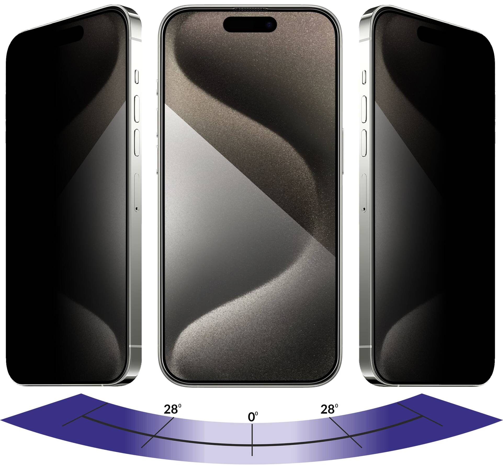 moVear mBOX GLASS mSHIELD 2.5D MAX privacyTempered glass for Apple iPhone 15 Pro (6.1"), with applicator, privacy filter2 pieces of glass in the package
