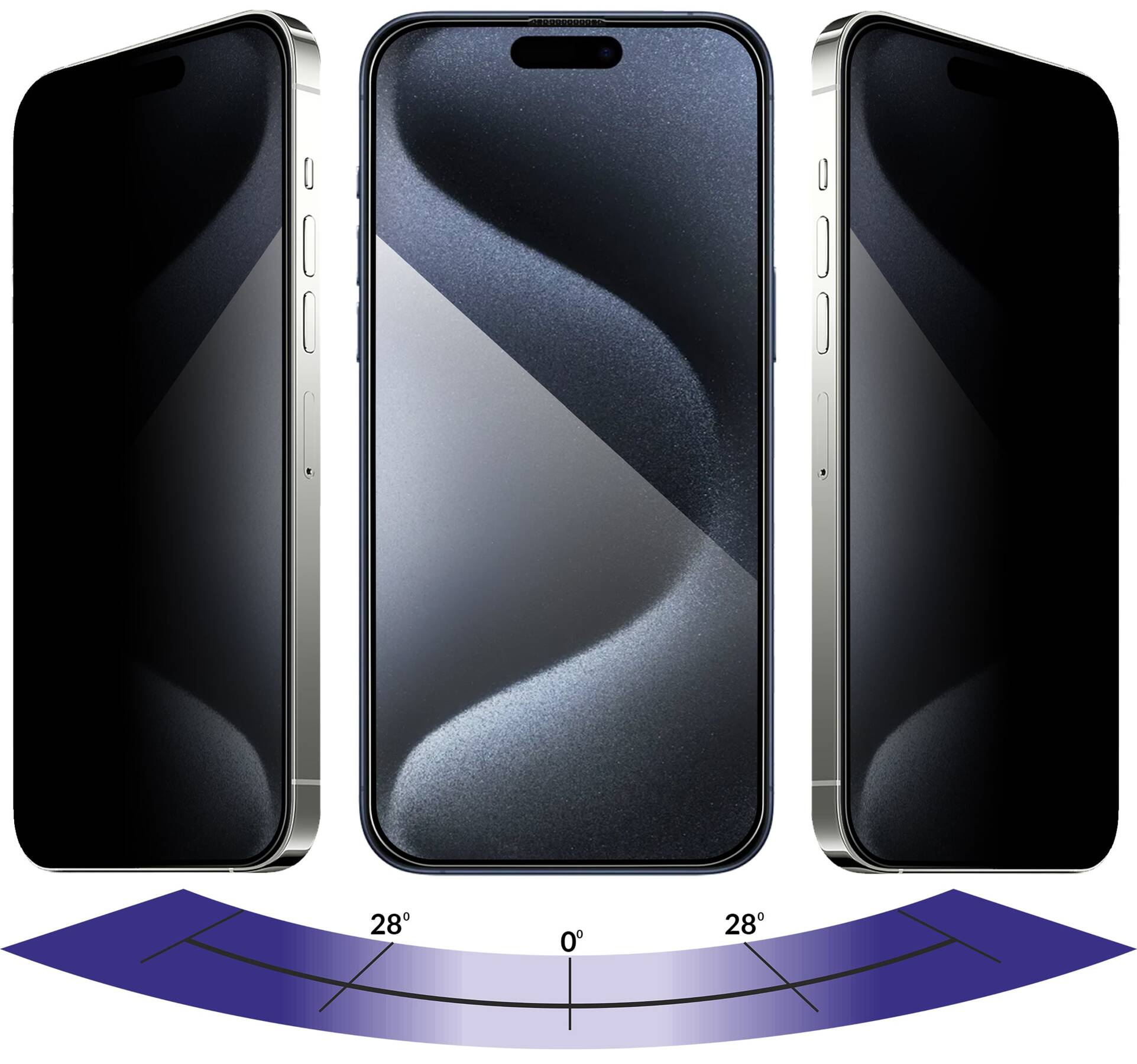 The applied special P28™ polarizing filter reduces the viewing angle of the content displayed on the Apple iPhone 15 Pro Max screen. Thanks to this special technology, people sitting next to you will not be able to see the contents of your phone's display. The moVear privacy glass is a simple and effective protection of privacy.