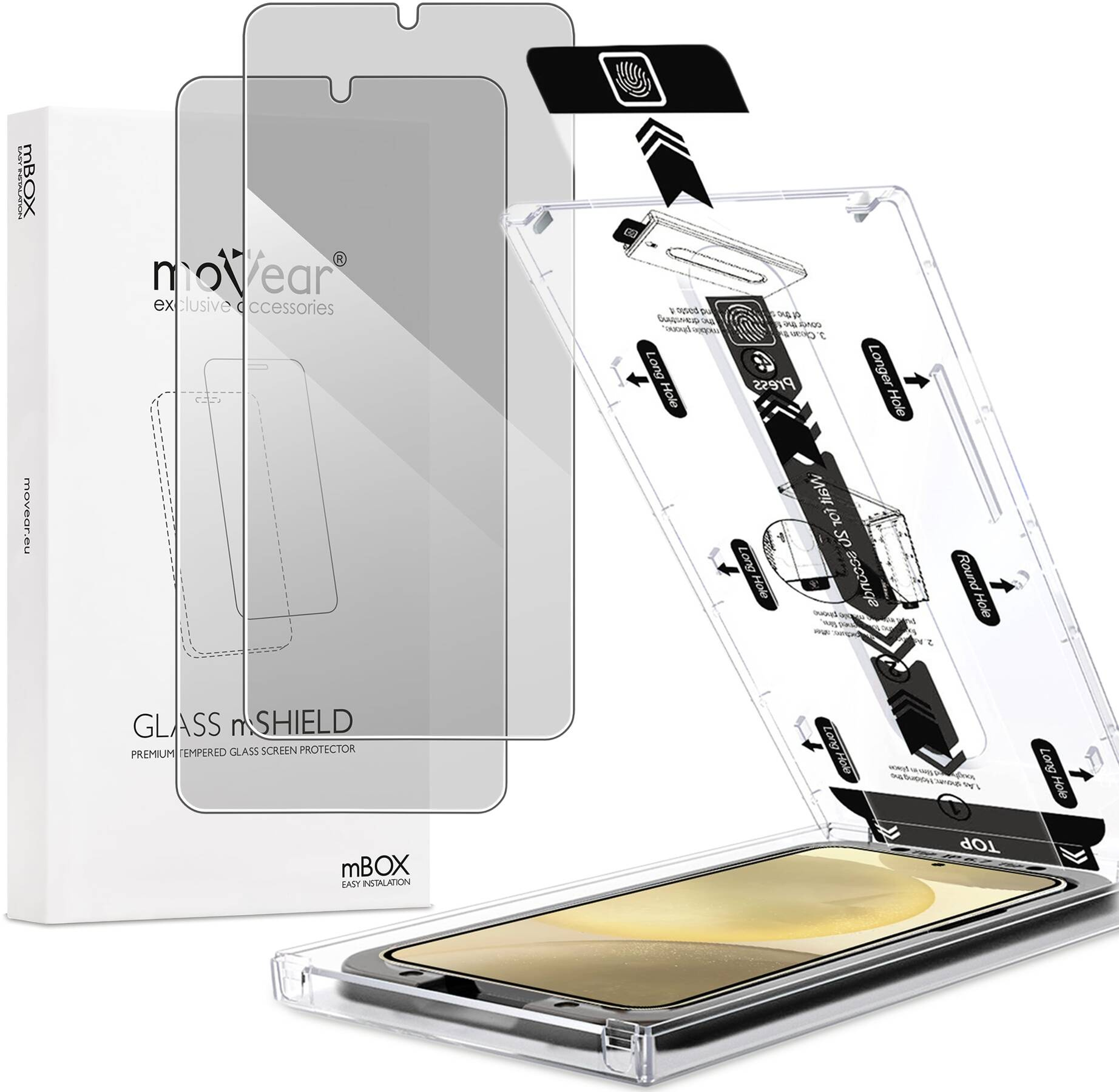 moVear mBOX GLASS mSHIELD 2.5D privacyTempered glass for Samsung Galaxy S25+/S24+ (Plus) (6.7"), with easy installation system2 pieces of glass in the package
