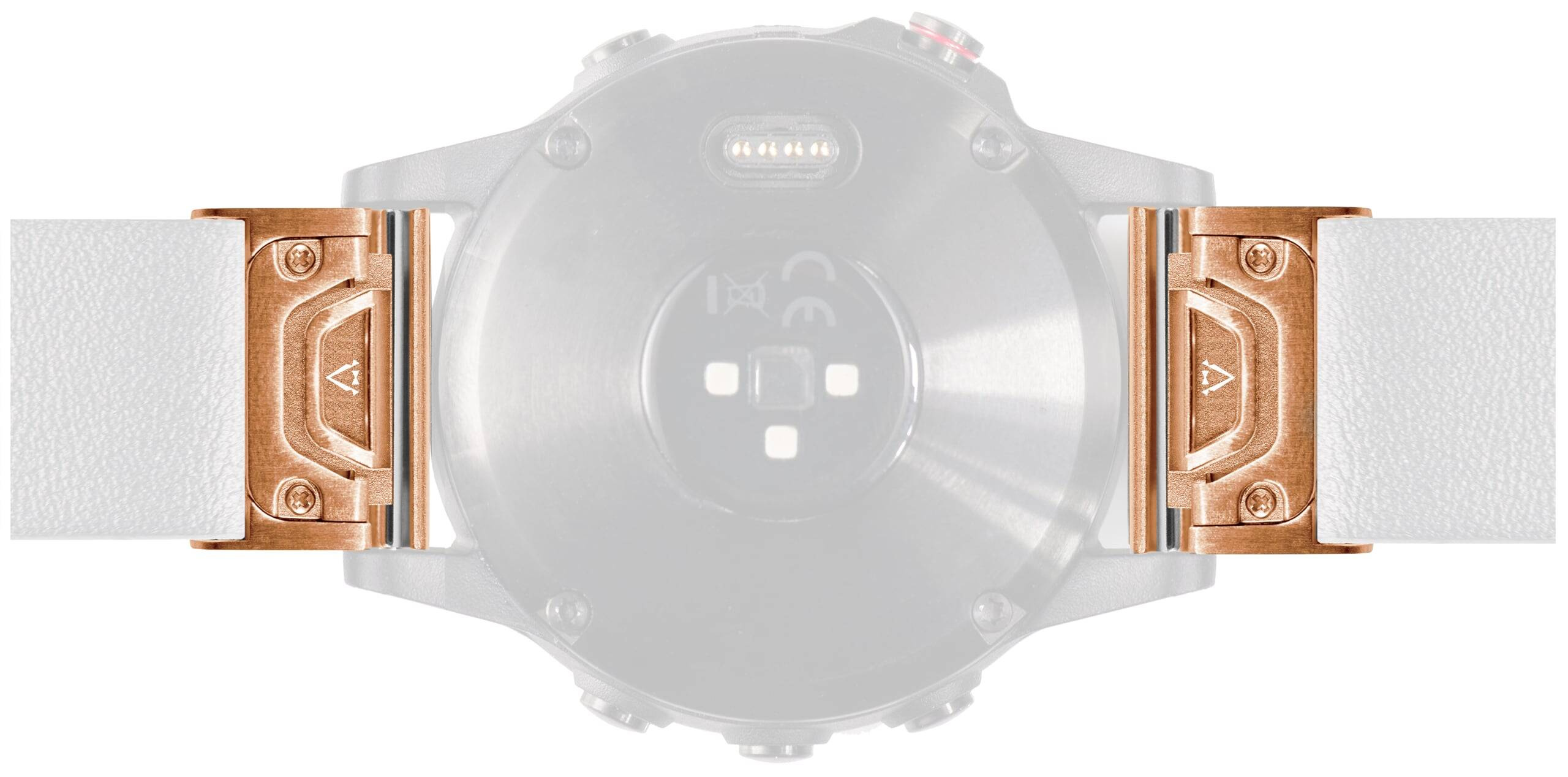 The Rose gold adapter made of stainless steel allows the use of any strap with a 20mm mounting width for Garmin QuickFit 22mm mounting.