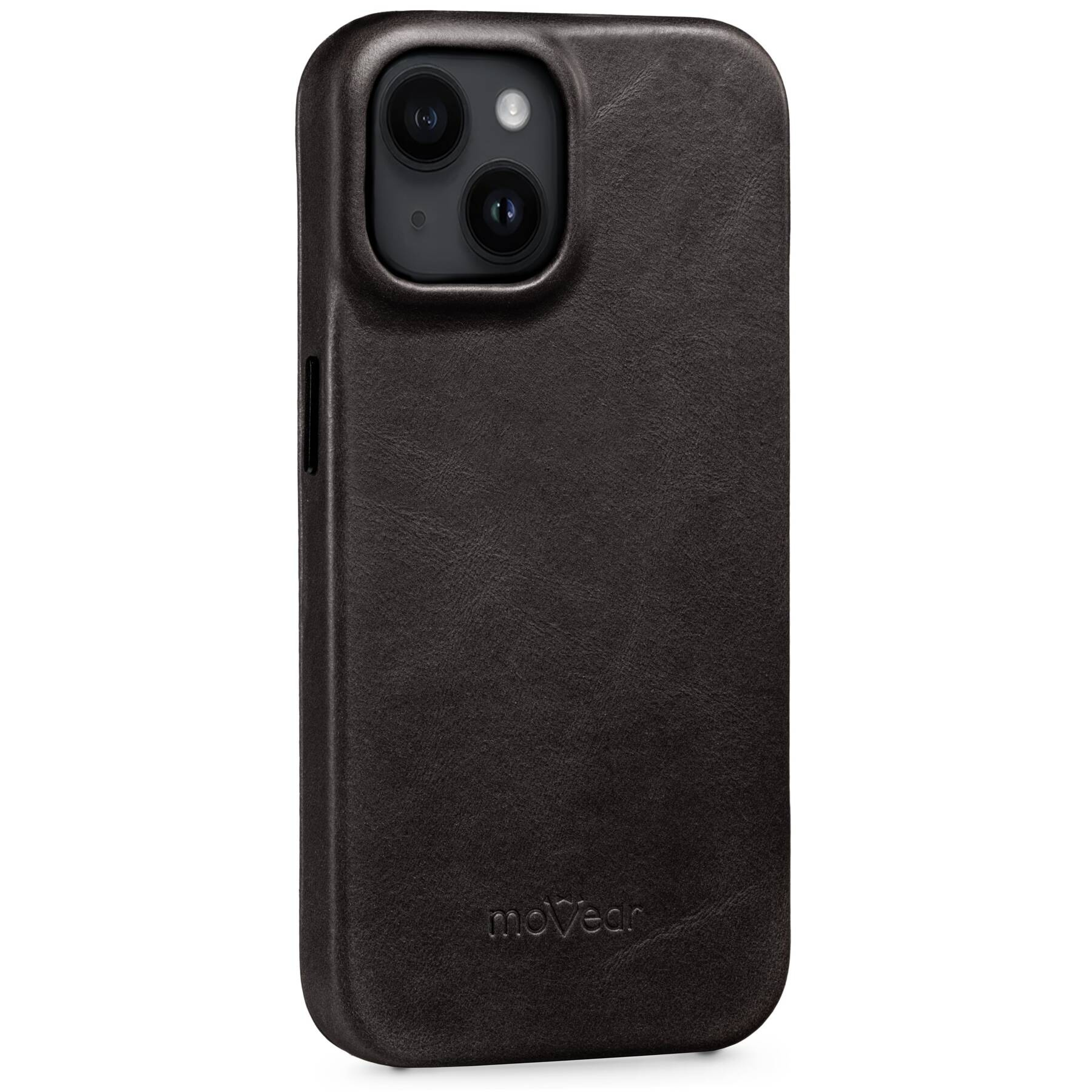 moVear flipSide 4SLeather slim case for Apple iPhone 14 Plus (6.7") | Natural oiled leather, color - Black