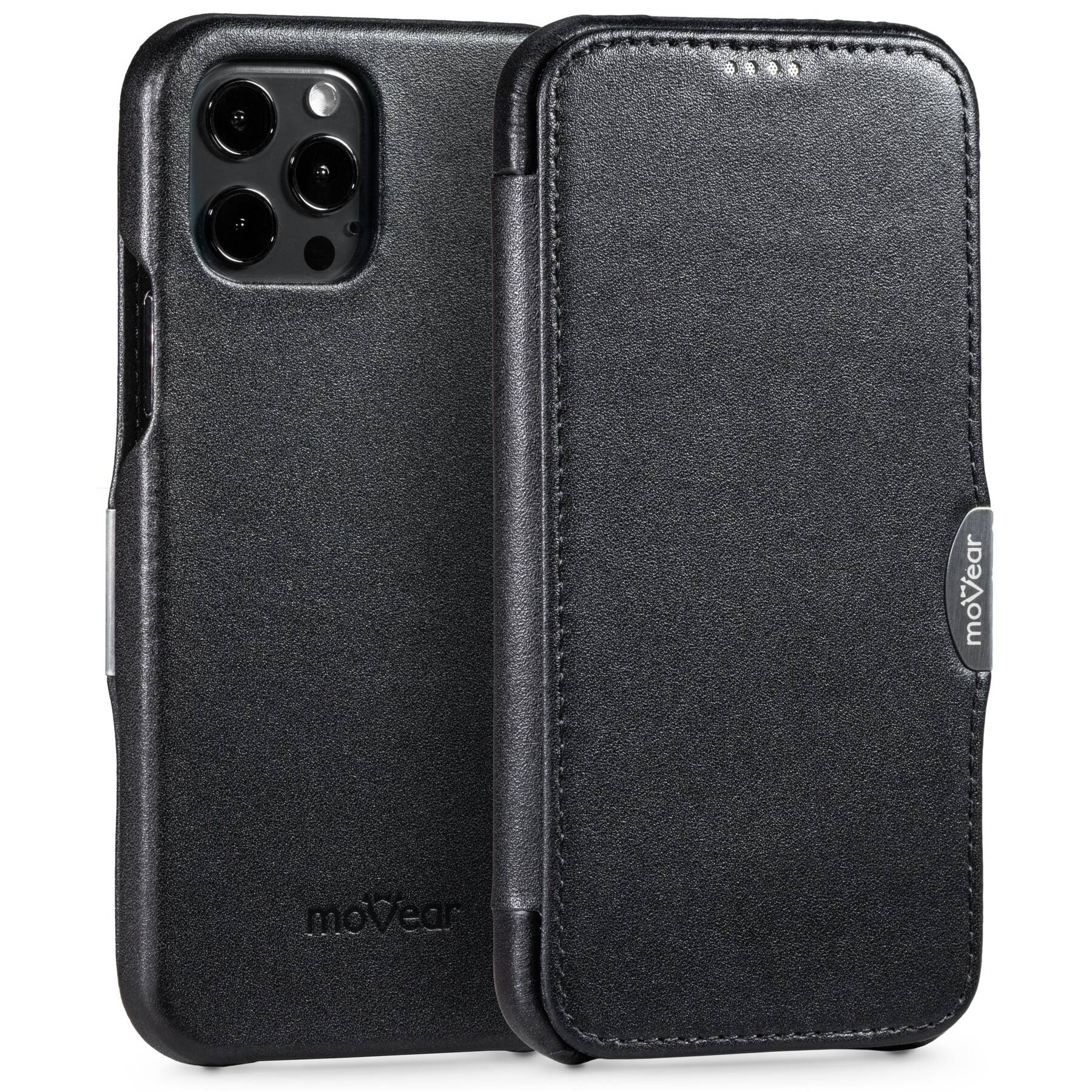 moVear flipSide CLeather case for Apple iPhone 12 Pro / 12 (6.1") | Smooth leather, color - Black