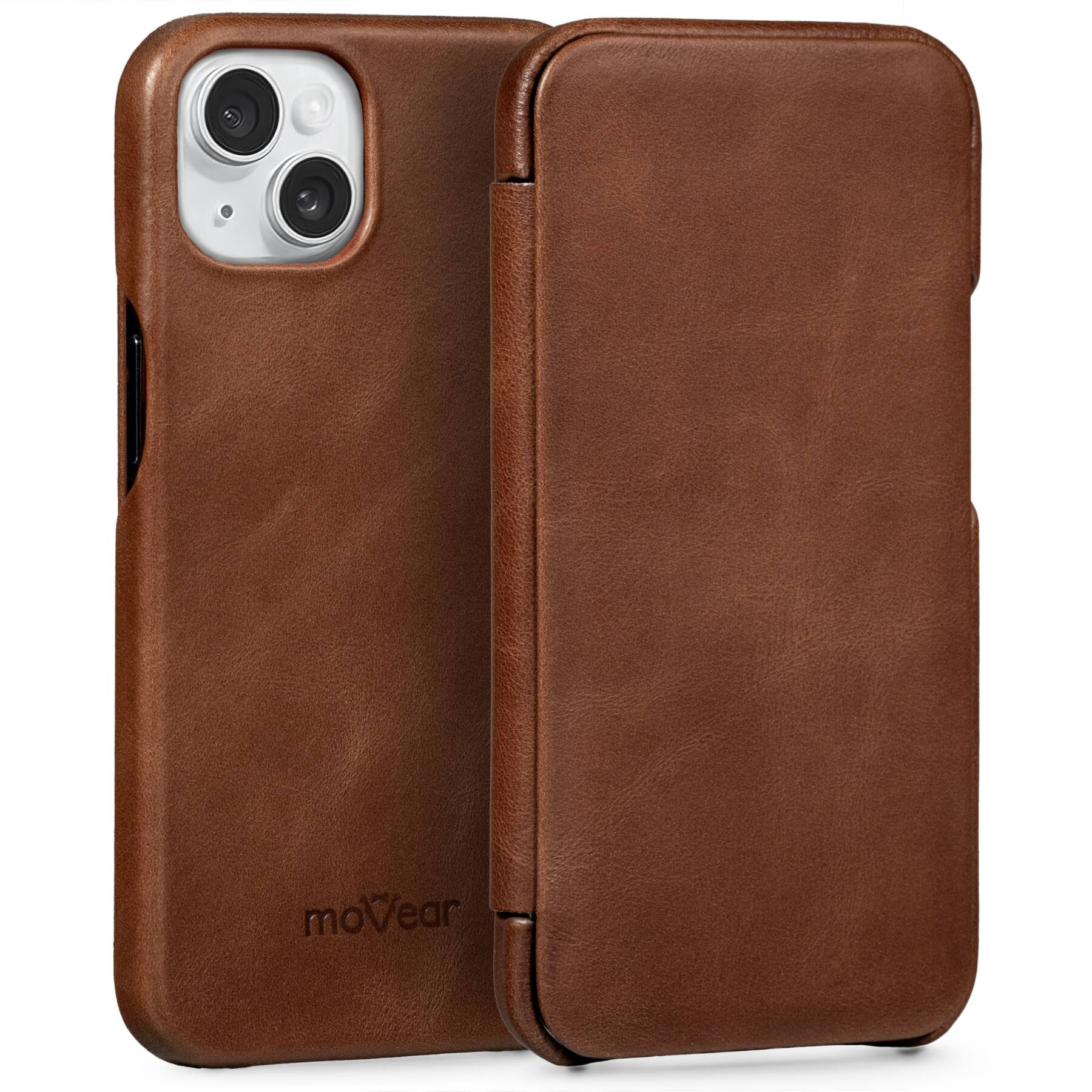 moVear flipSide SLeather slim case for Apple iPhone 13 (6.1") | Natural oiled leather, color - Dark brown