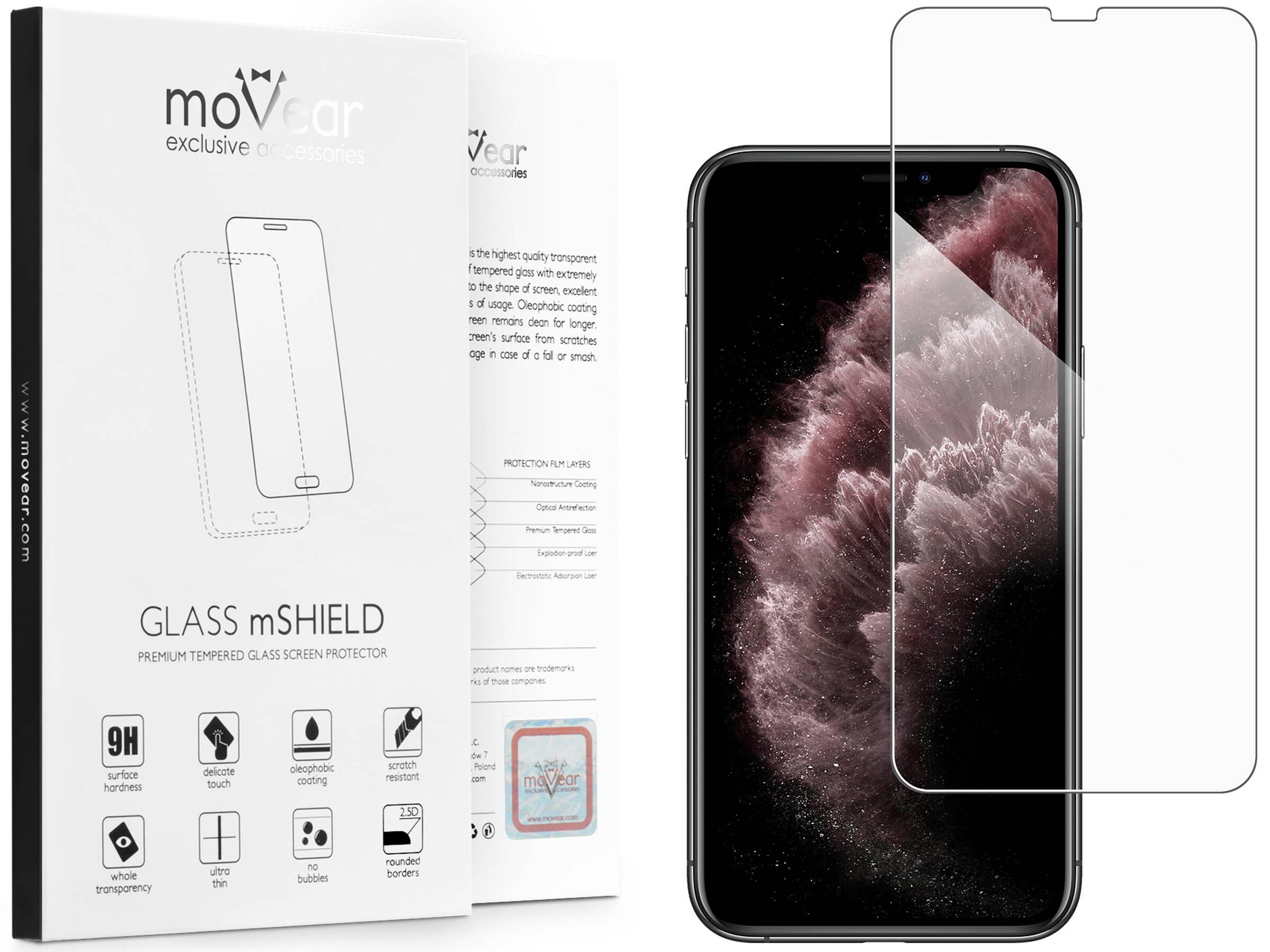 - 1 pc. moVear GLASS mSHIELD 2.5D tempered glass for the Apple iPhone 11 Pro Max / Xs MAX