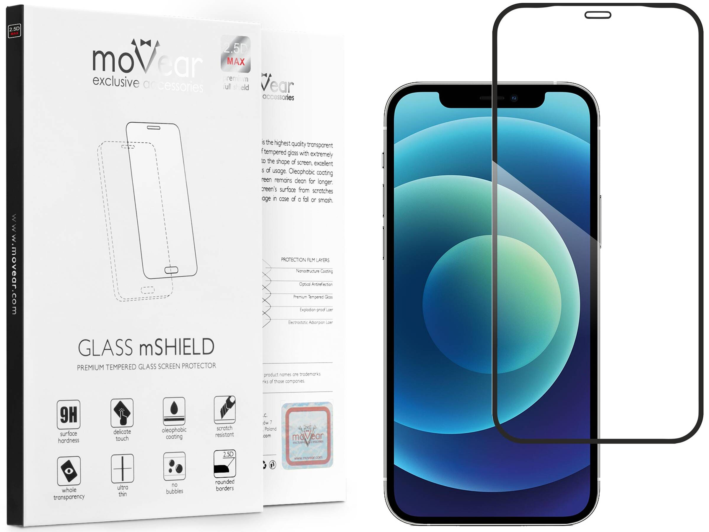 - 1 pc. moVear GLASS mSHIELD 2.5D MAX tempered glass for the Apple iPhone 12 Pro / 12