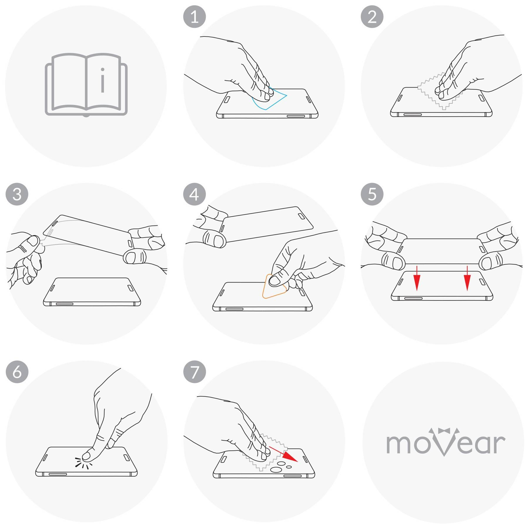 - Gently remove the protective plastic layer from moVear GLASS mSHIELD 2.5D MAX, exposing the surface that will adhere to the display. Remember not to touch any exposed surface!