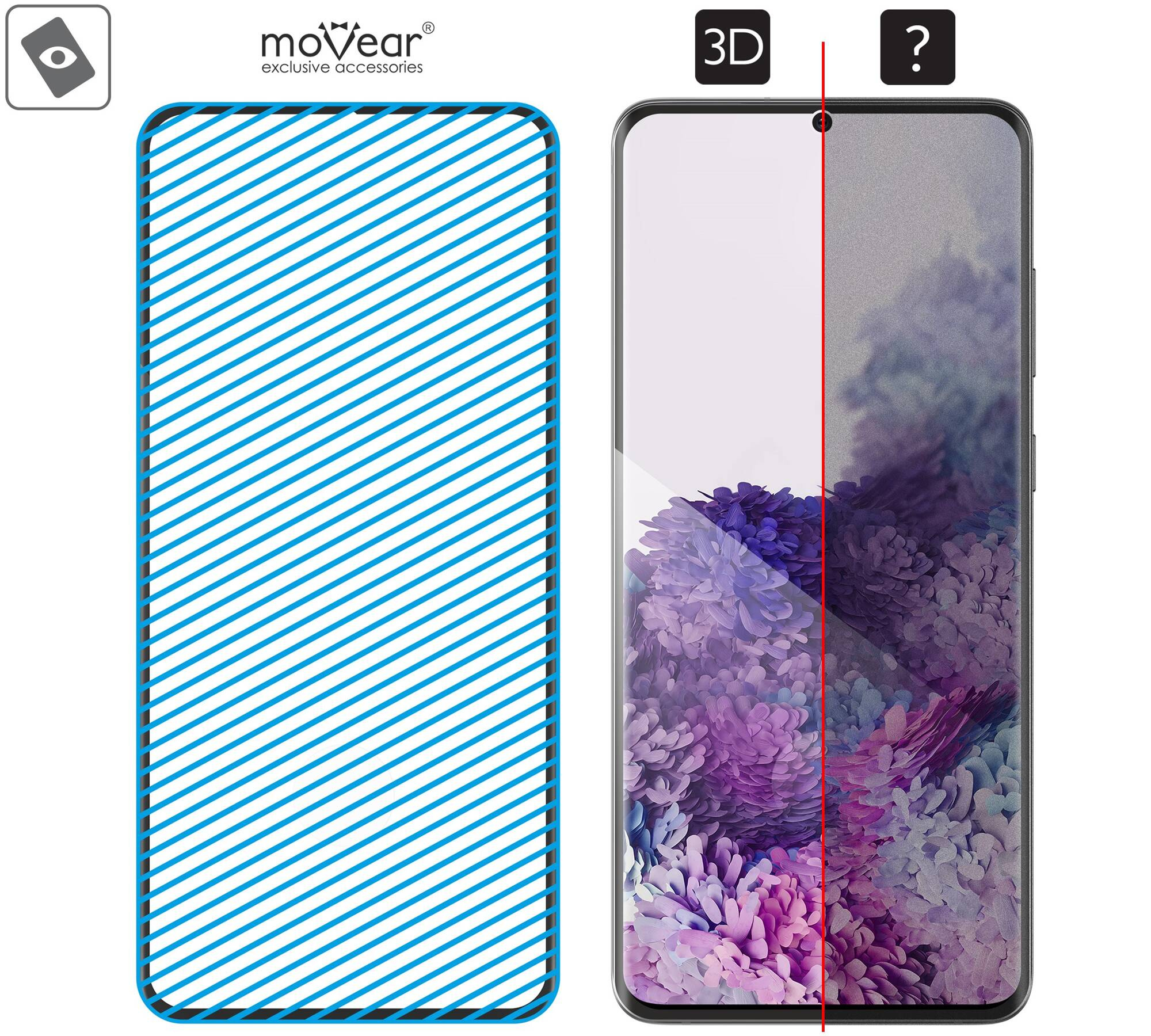 Pay attention to the model and size of the smartphone screen. Glass moVear GLASS mSHIELD 3D only compatible with Samsung Galaxy S20 z ekranem o przekątnej 6.2 cala.