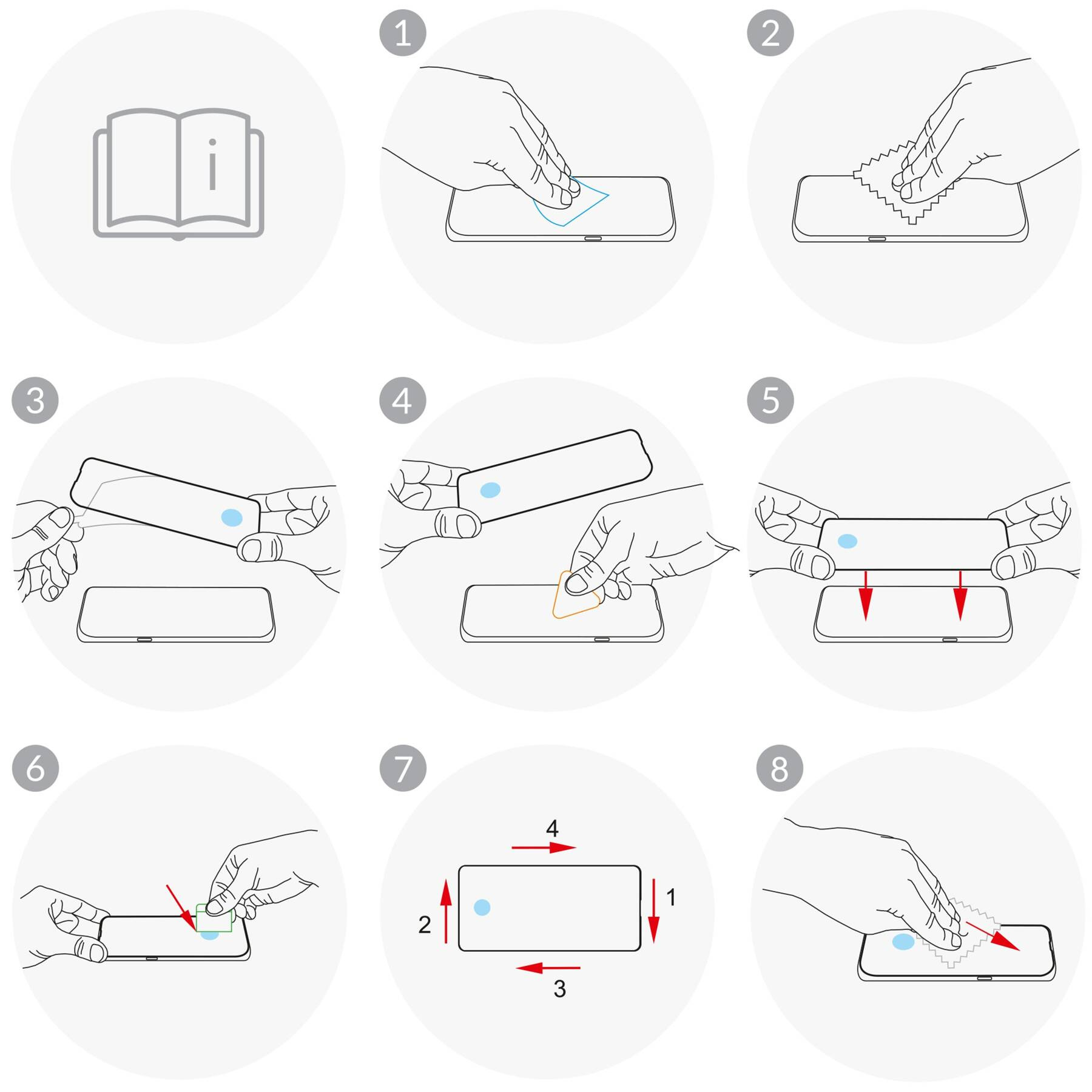 - Clean the screen thoroughly with a alcohol pad.