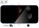 The appearance and size of the glass on the phone br />The picture on the right shows what area of the screen is covered by moVear GLASS mSHIELD 3D PRO-E and 2.5D tempered glass for the iPhone 12 Pro / 12 phone.