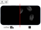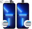 The appearance and size of the glass on the phone br />The picture on the right shows what area of the screen is covered by moVear GLASS mSHIELD 3D PRO-E and 2.5D tempered glass for the Apple iPhone 13 Pro Max / 14 Plus (6.7") phone.