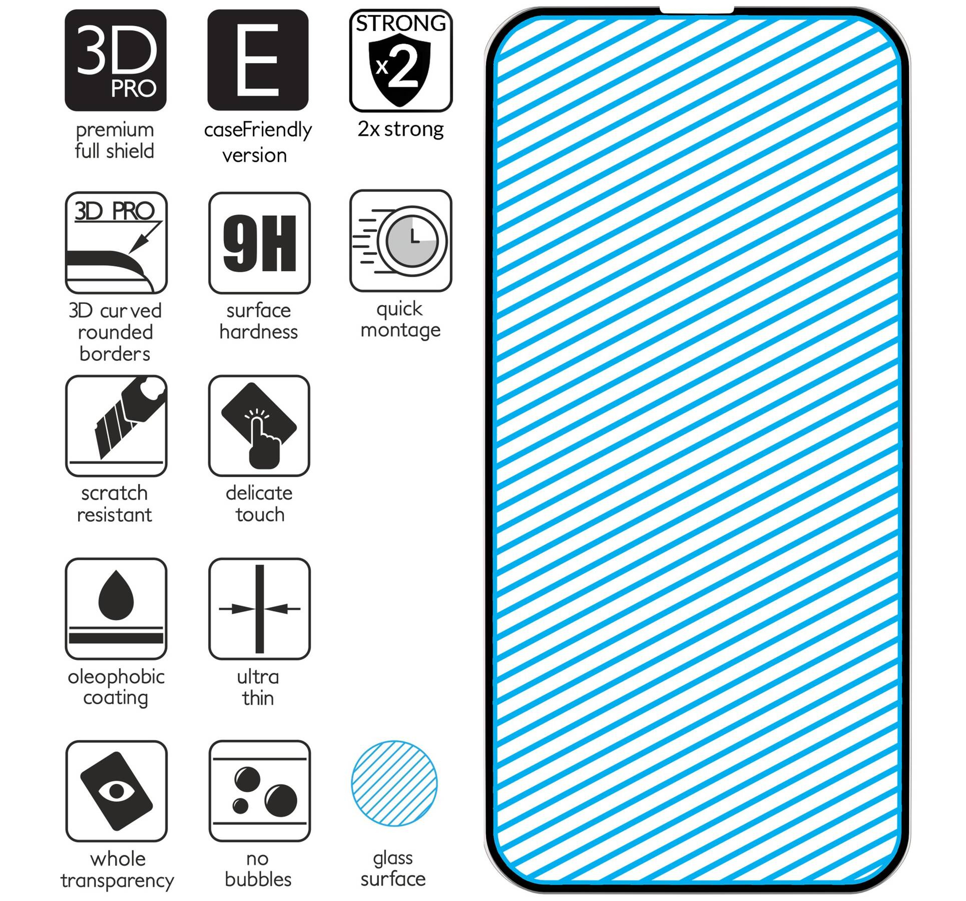 With 3D PRO-E edges / Protects the entire screen