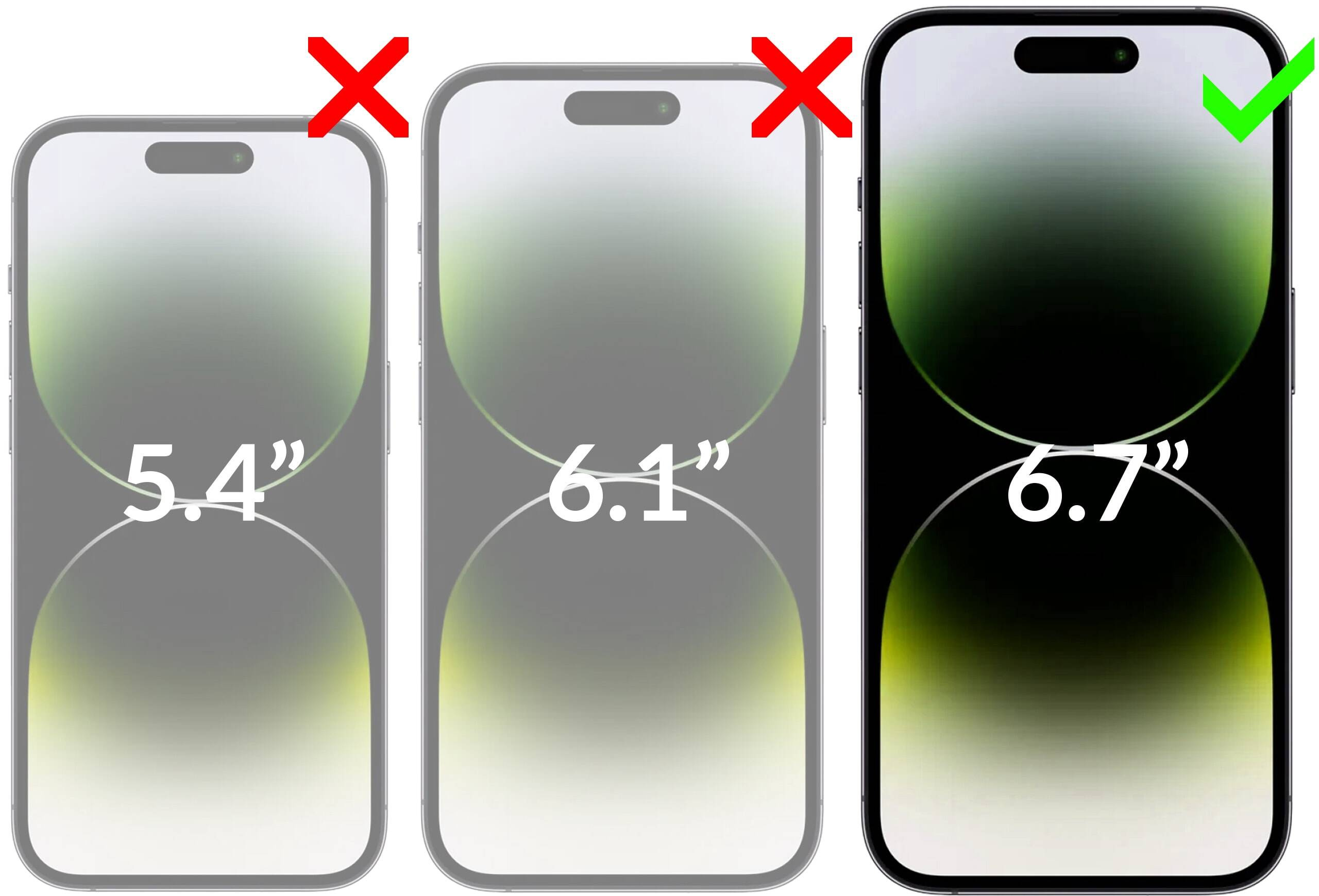 Pay attention to the model and size of the smartphone screen. Glass only compatible with Apple iPhone 14 Pro Max z ekranem o przekątnej 6.7 cala.