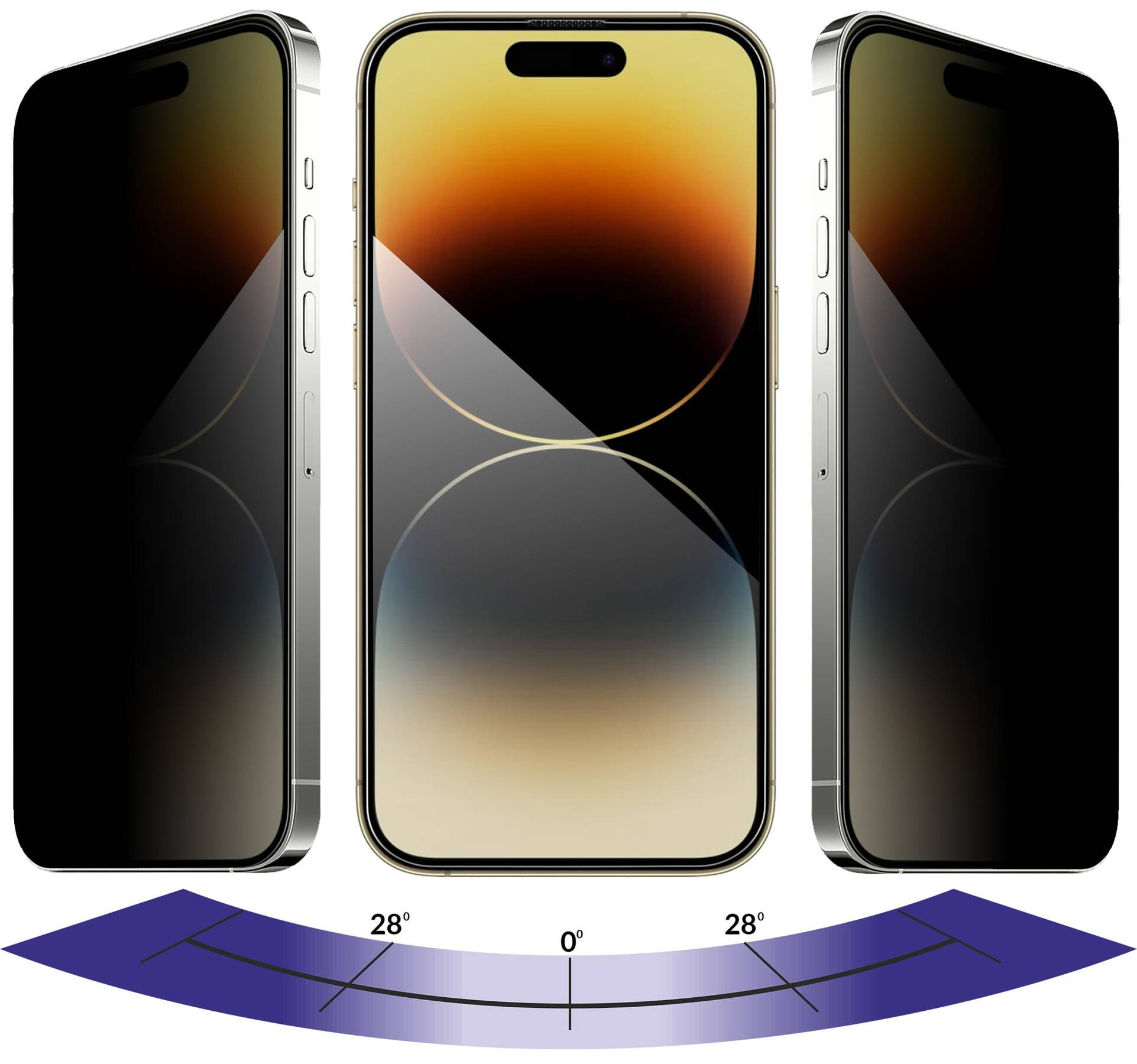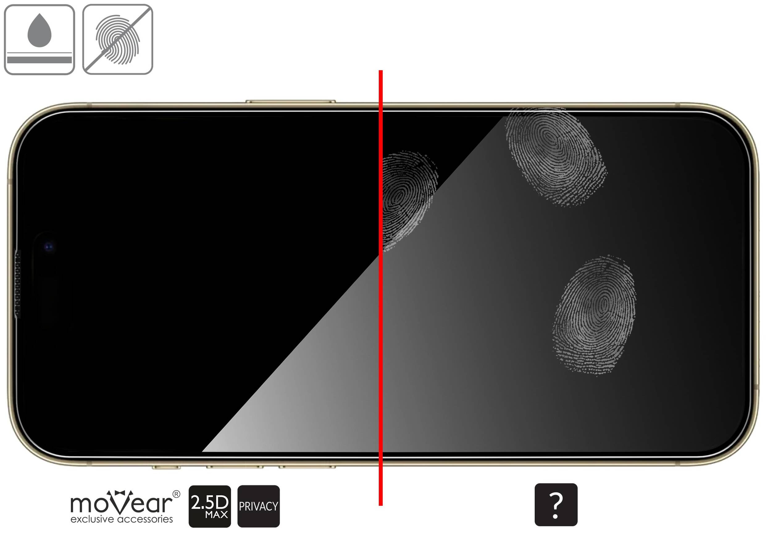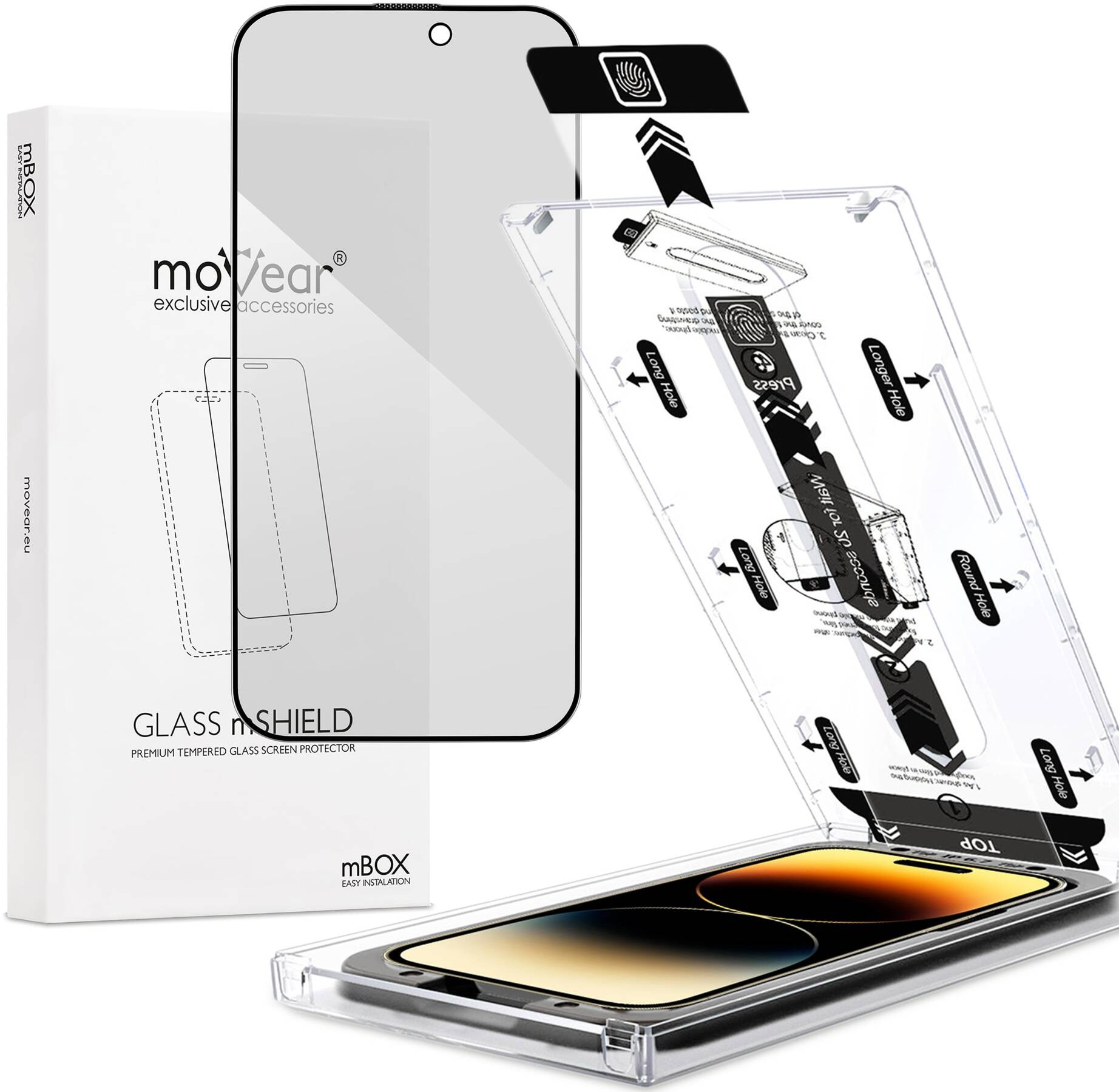 moVear mBOX GLASS mSHIELD 2.5D MAX privacyTempered glass for Apple iPhone 14 Pro (6.1"), with applicator, privacy filter