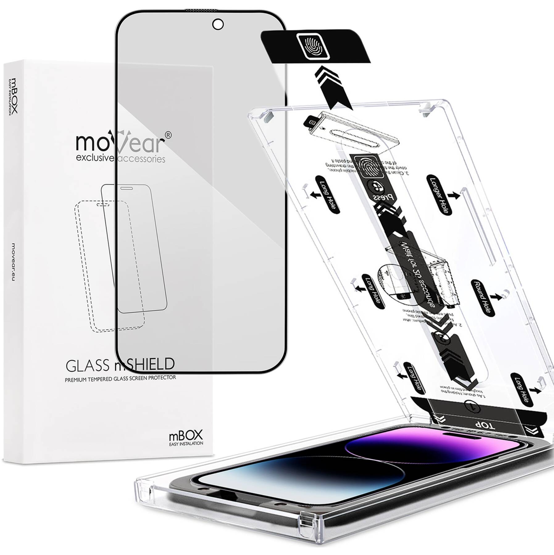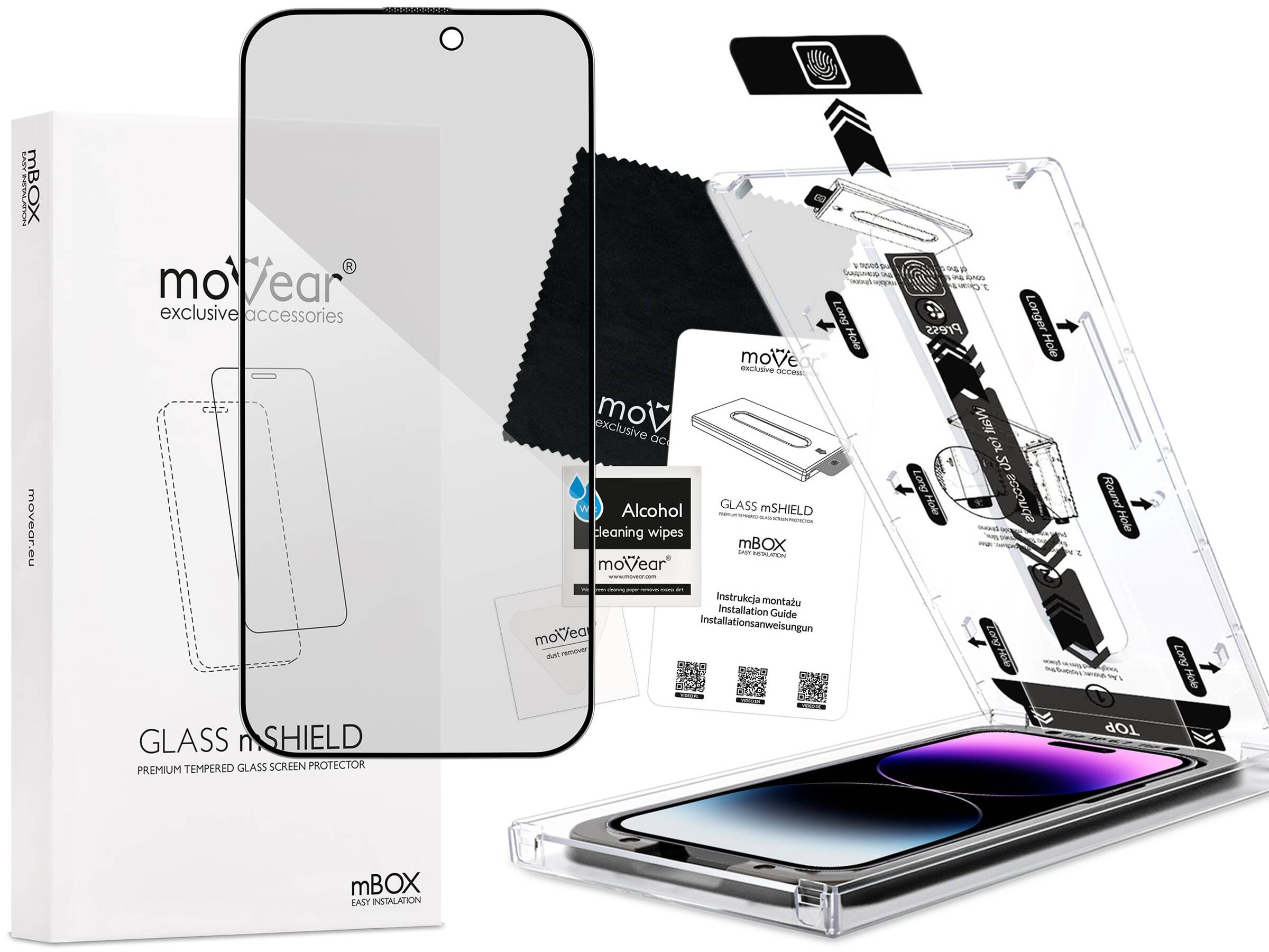 - 1 pc. moVear mBOX GLASS mSHIELD 2.5D MAX privacy tempered glass for the iPhone 14 Pro Max (6.7")
