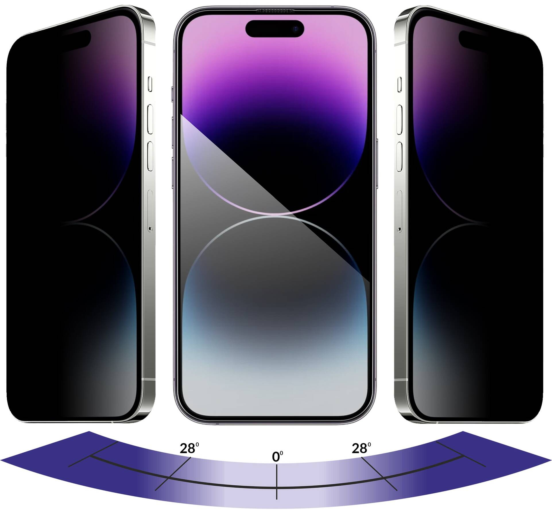 The applied special P28™ polarizing filter reduces the viewing angle of the content displayed on the iPhone 14 Pro Max (6.7") screen. Thanks to this special technology, people sitting next to you will not be able to see the contents of your phone's display. The moVear privacy glass is a simple and effective protection of privacy.