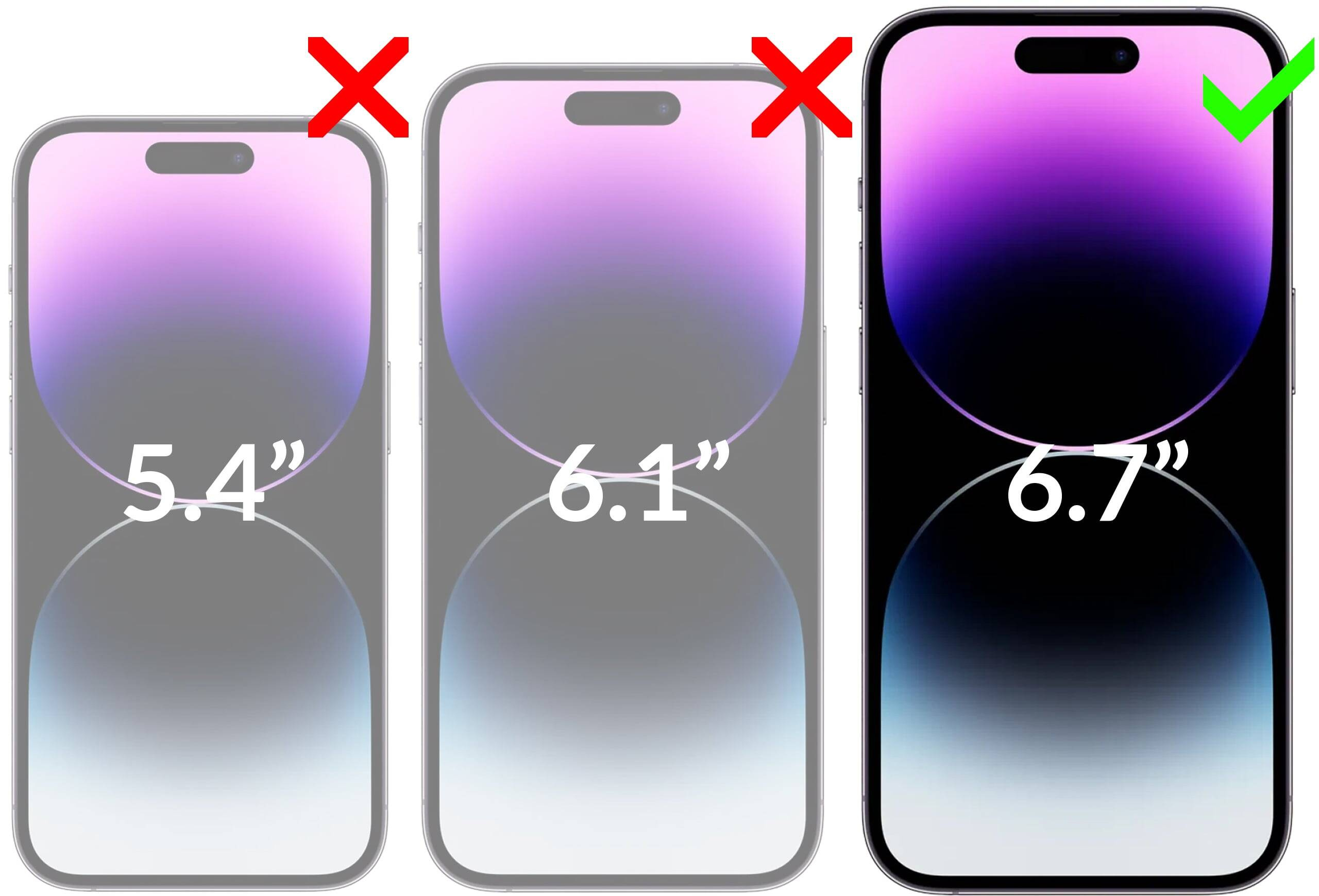 Pay attention to the model and size of the smartphone screen. Glass only compatible with Apple iPhone 14 Pro Max z ekranem o przekątnej 6.7 cala.
