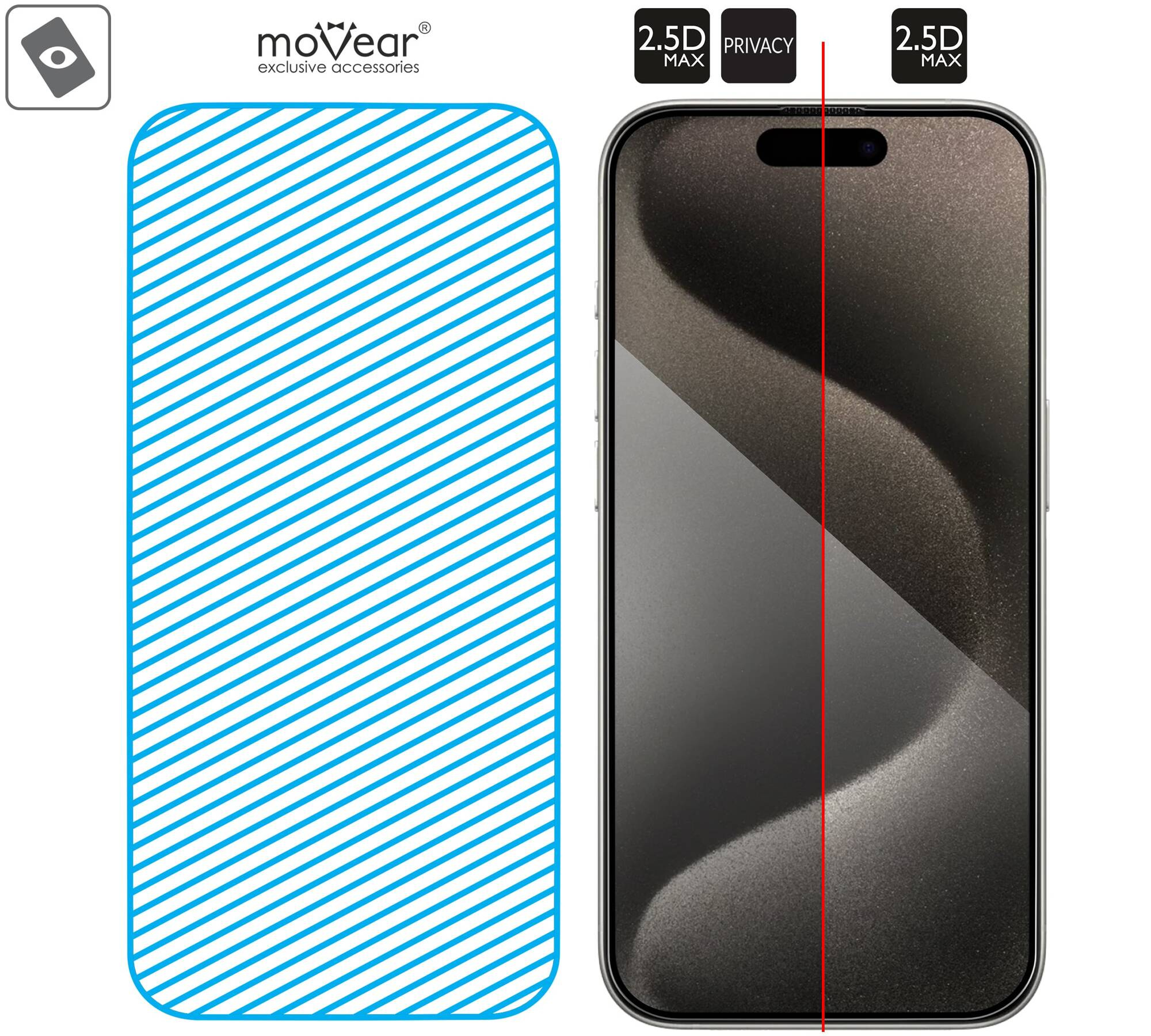 moVear mBOX GLASS mSHIELD 2.5D MAX privacyTempered glass for Apple iPhone 15 Pro (6.1"), with applicator, privacy filter