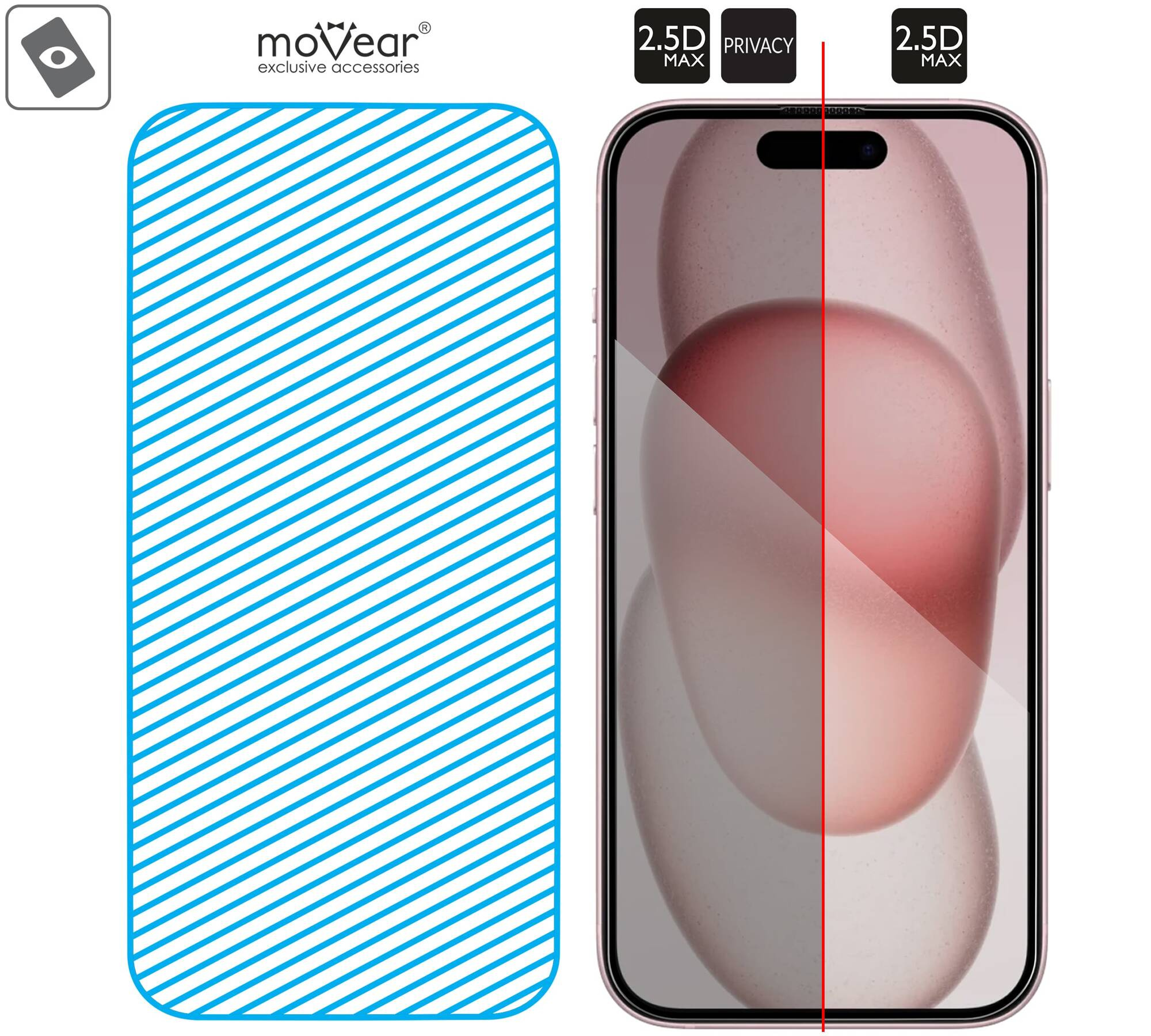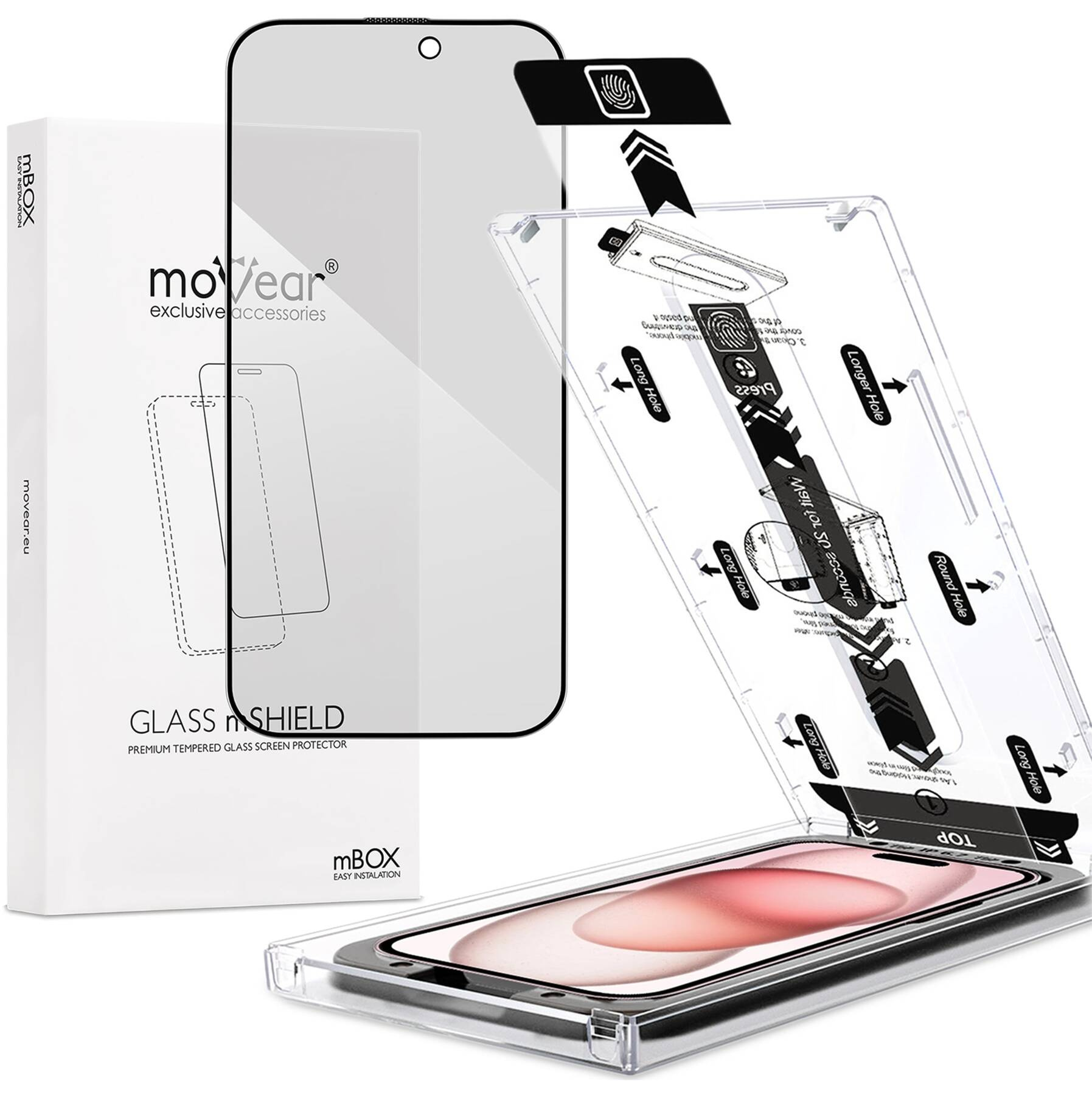 - 1 pc. moVear mBOX GLASS mSHIELD 2.5D MAX privacy tempered glass for the Apple iPhone 16 / 15 (6,1")