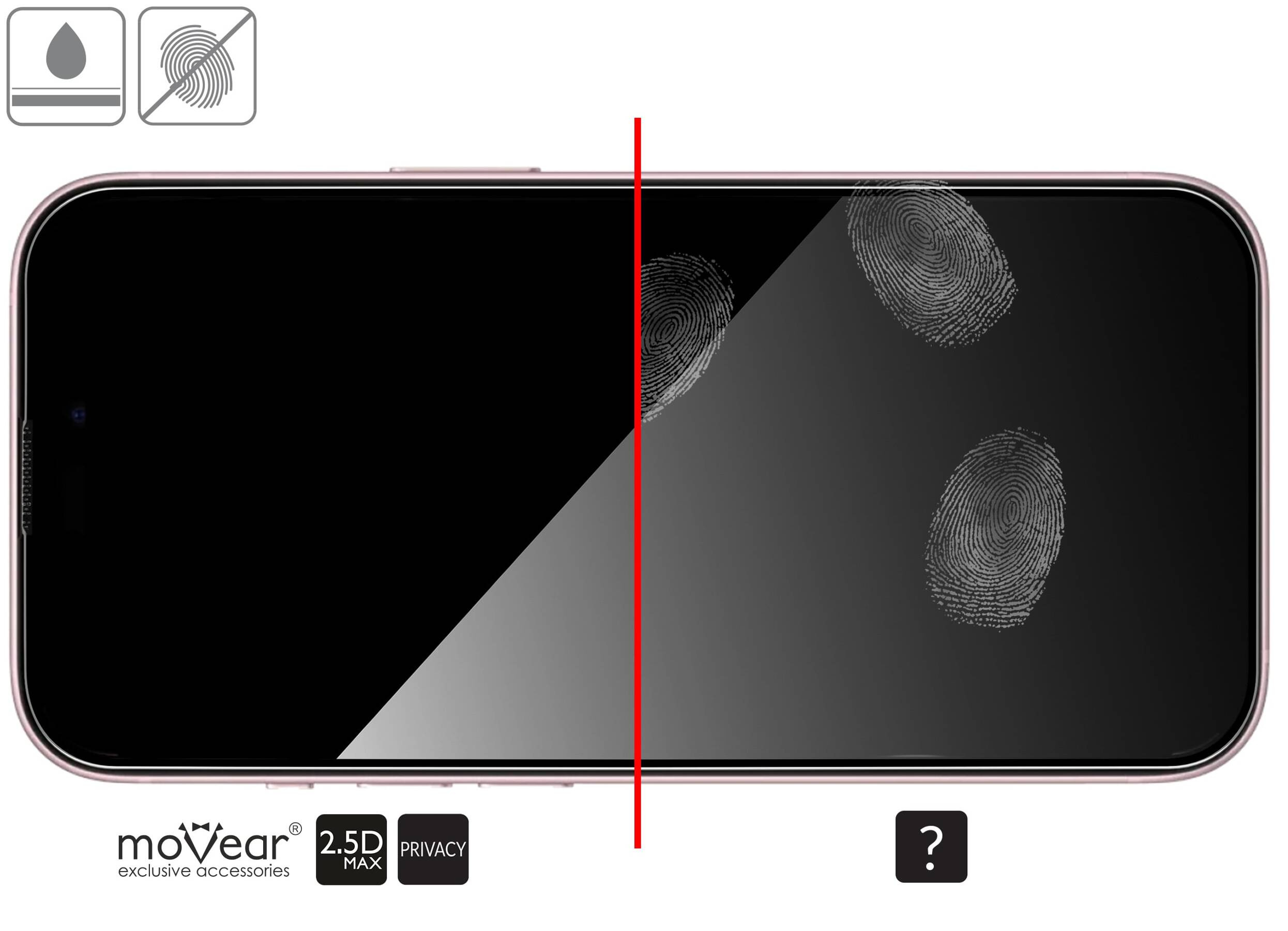 moVear mBOX GLASS mSHIELD 2.5D MAX privacyTempered glass for Apple iPhone 16 / 15 (6,1"), with applicator, privacy filter