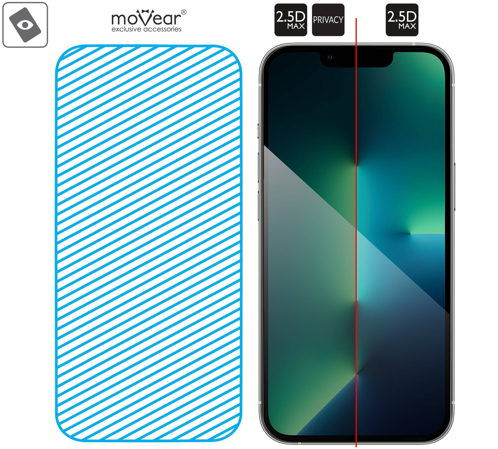 moVear mBOX GLASS mSHIELD 2.5D MAX privacyTempered glass for Apple iPhone 16e / 14 / 13 / 13 Pro (6.1"), with applicator, privacy filter
