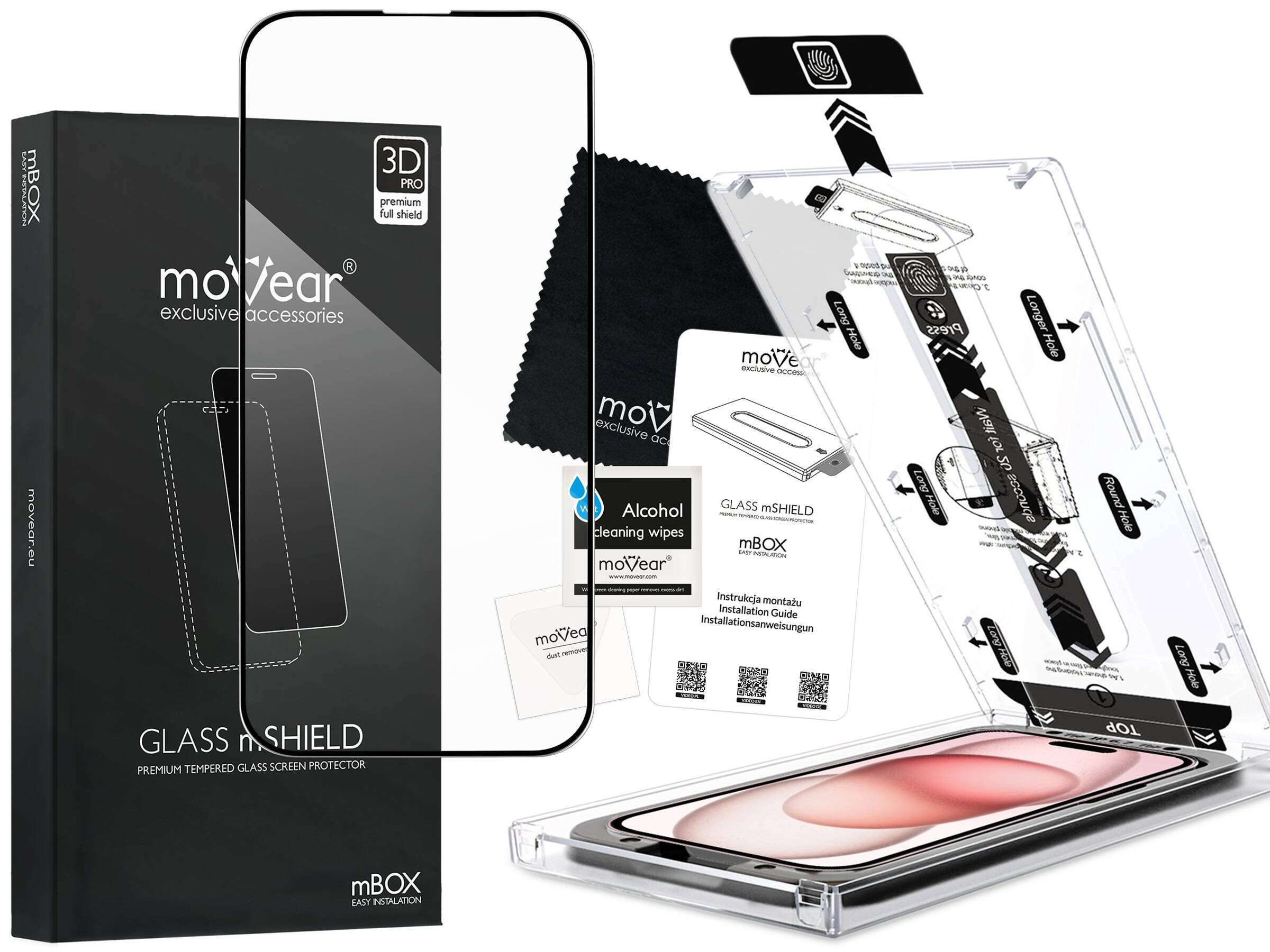 moVear mBOX GLASS mSHIELD 3D PROTempered glass for Apple iPhone 16 / 15 (6,1"), with easy installation system