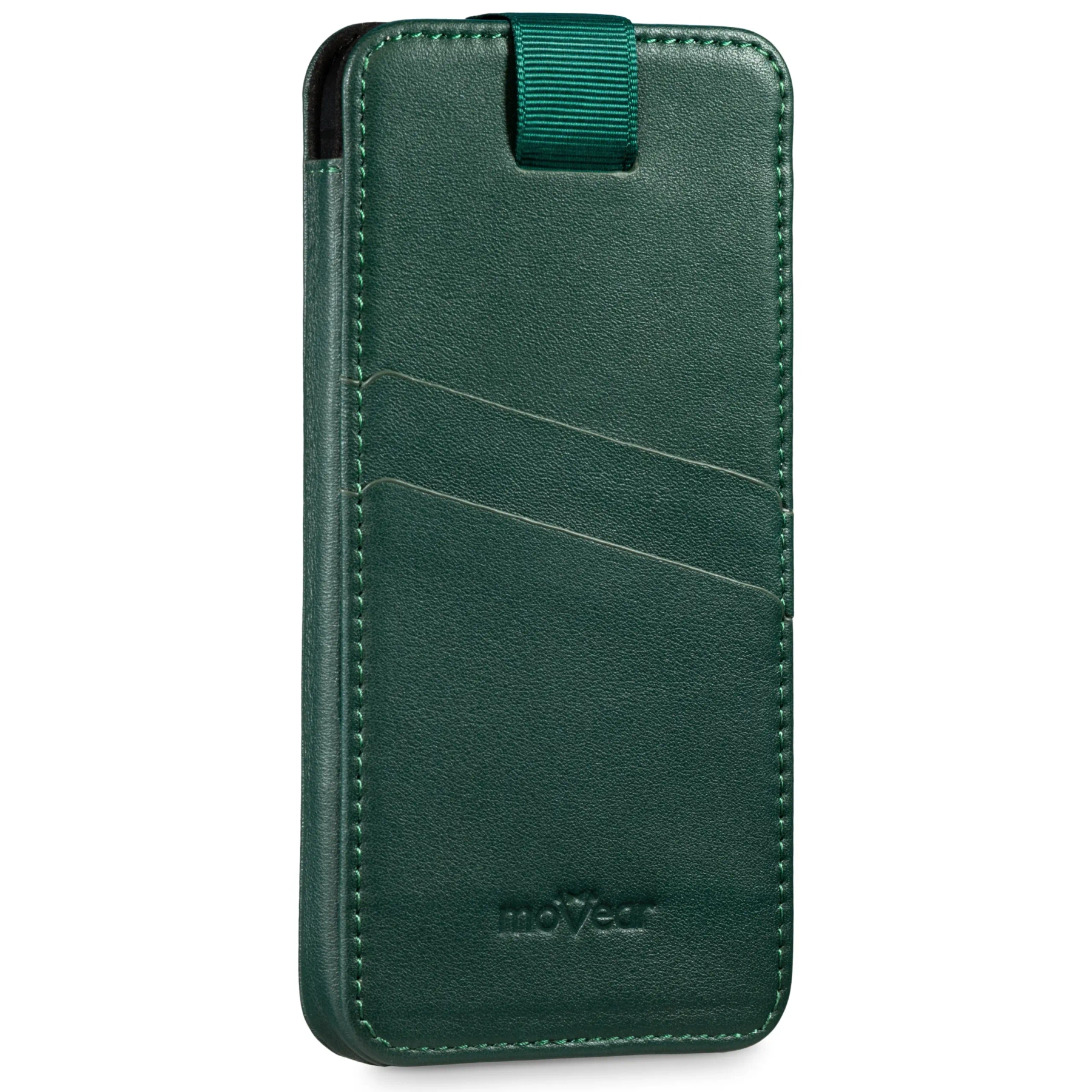 moVear pocketCase C+Leather slide case for Apple iPhone 17/16/15/14, 13/12/11 Pro, Xs/X (0) | Nappa leather, color - Bottle green.