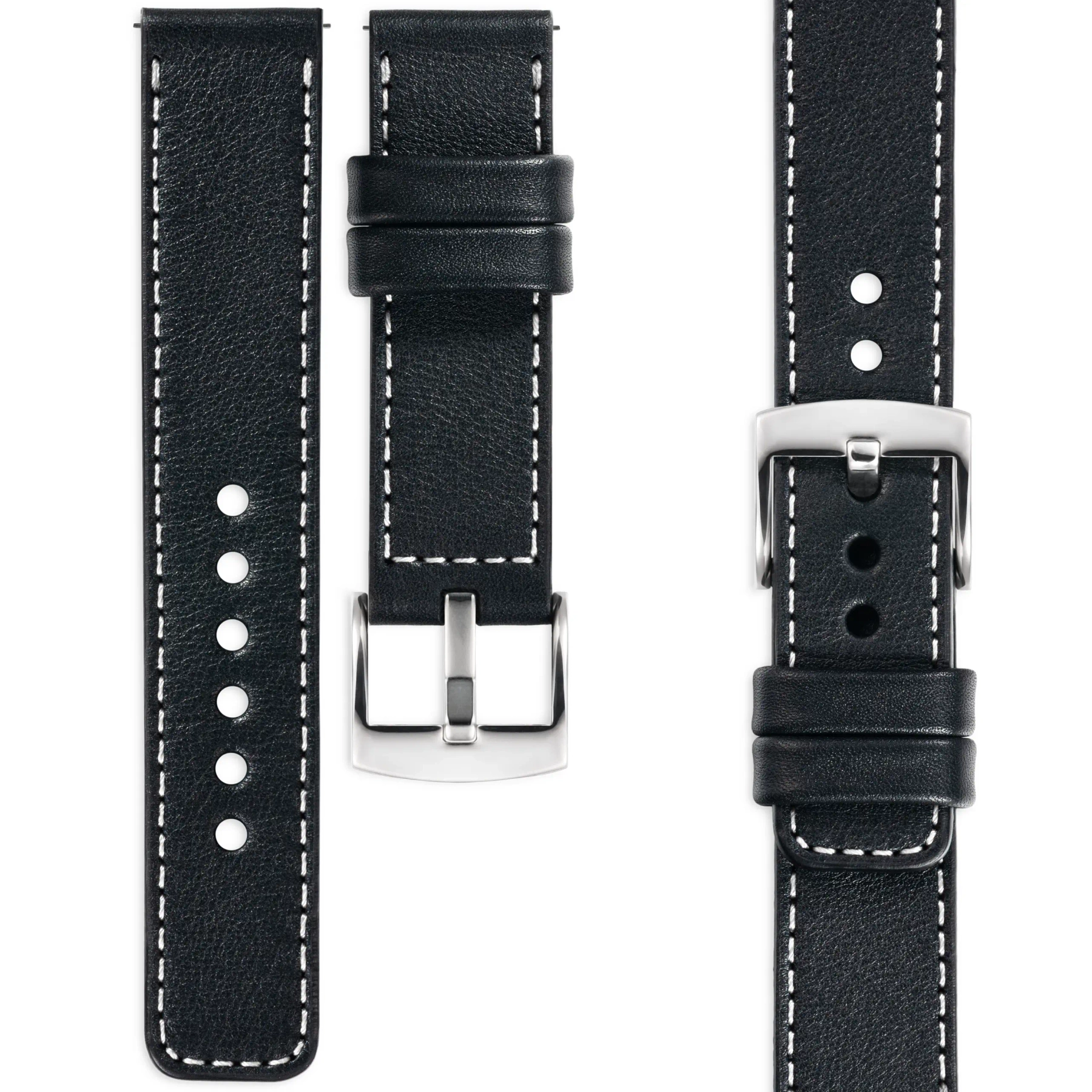 moVear Prestige C1 18mm Leather strap for Huawei Watch GT 5 4 / Pro (42/41mm) | Black, elegant White stitching