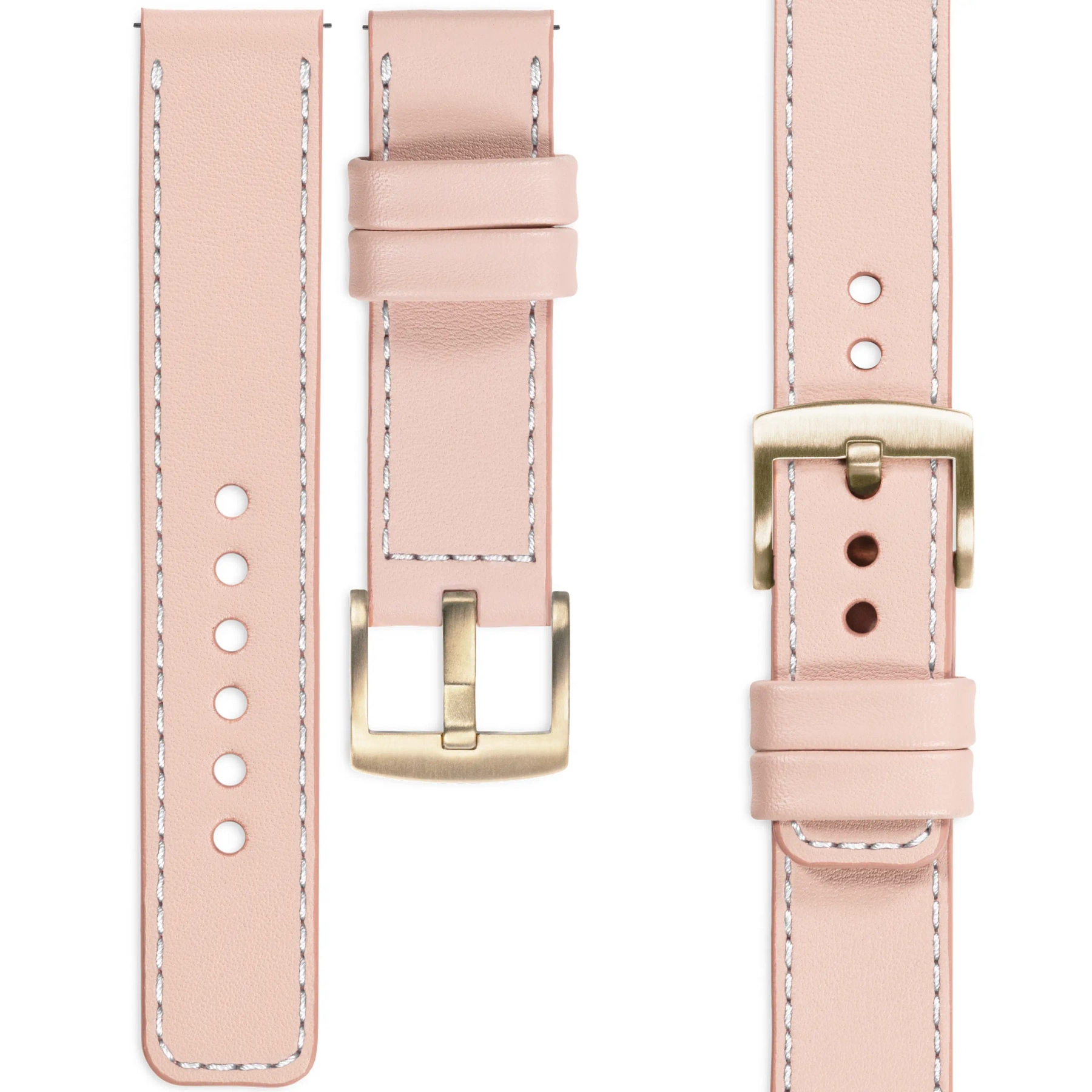 moVear Prestige C1 18mm Leather strap for Garmin Vivoactive 4S, Venu 3S/2S, Vívomove 3S | Flesh pink, elegant White stitching