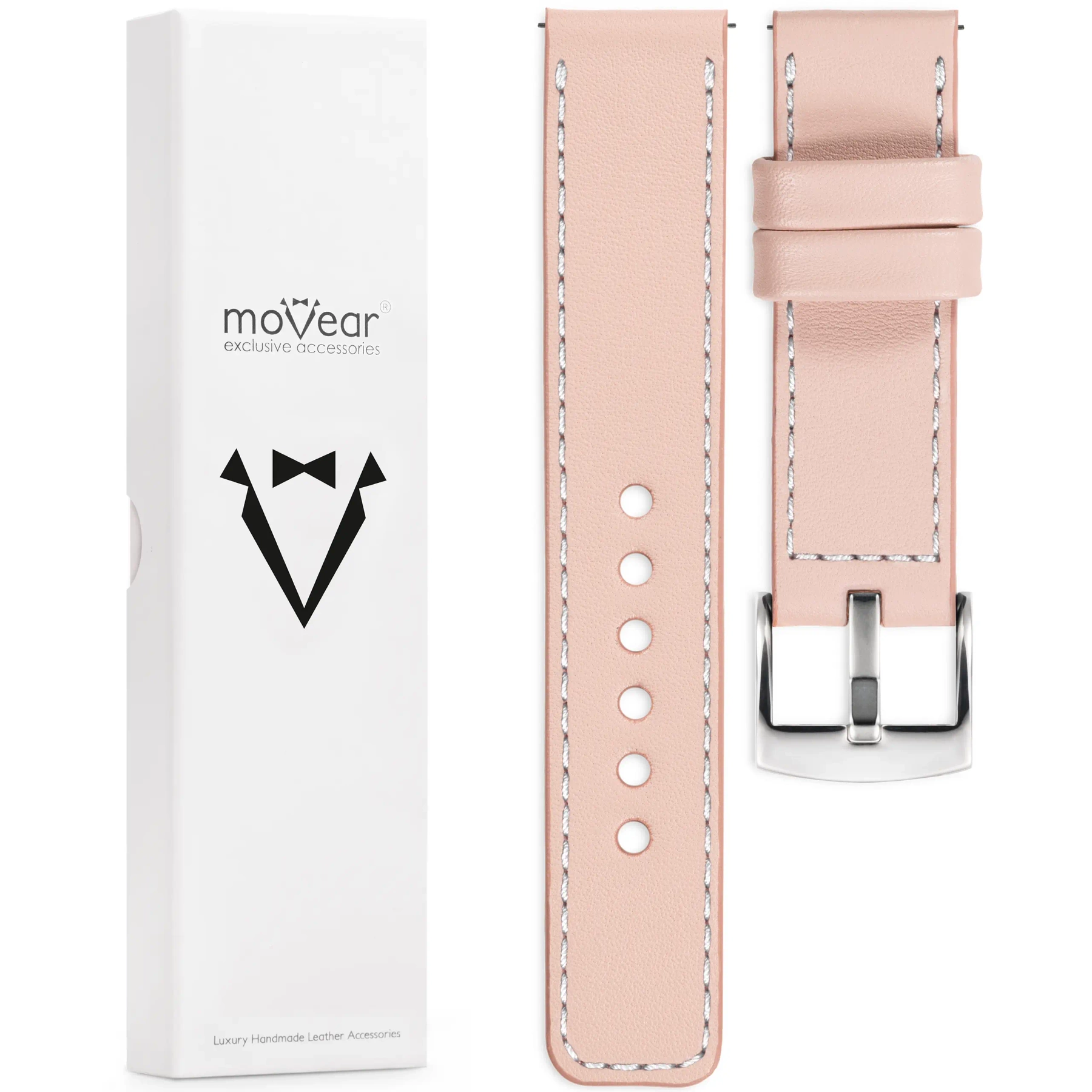 - 1 pc. moVear Prestige C1 - Leather strap 18mm wide, Flesh pink, Flesh pink stitching
