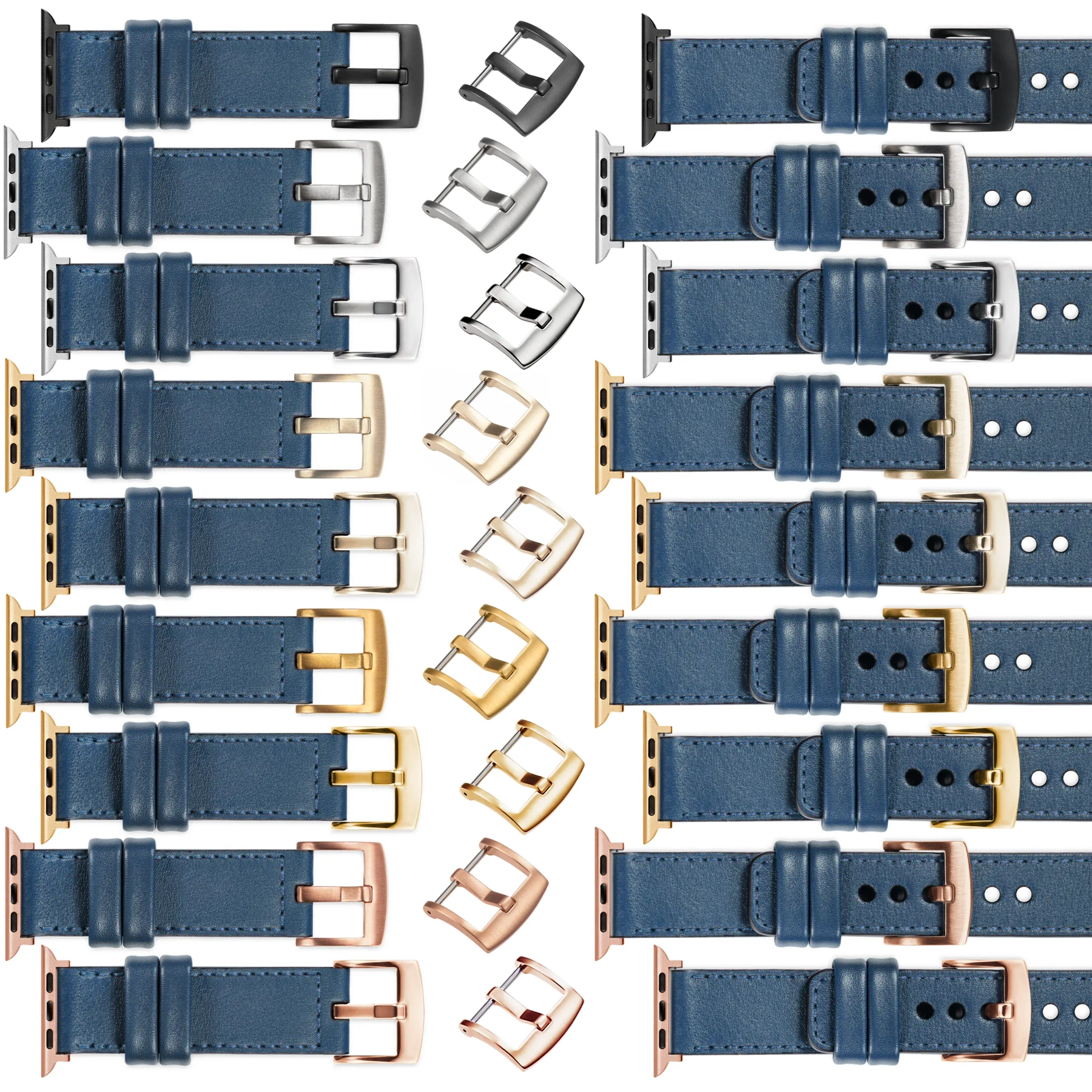 moVear Prestige C1 20mm Leather strap for Apple Watch 10 / 9 / 8 / 7 / 6 / 5 / 4 / SE (42/41/40mm) | Blue Jeans, elegant Blue Jeans stitching