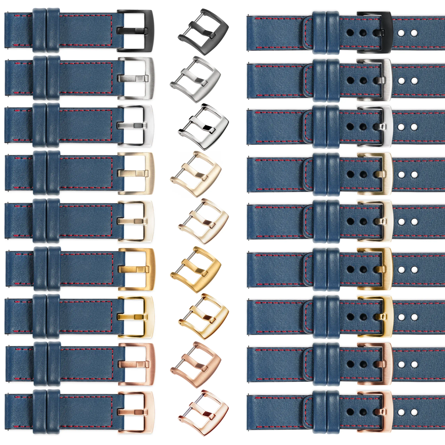moVear Prestige C1 20mm Leather strap for Huawei Watch GT 3 2 1 / Pro (43/42mm) | Blue Jeans, elegant Red stitching