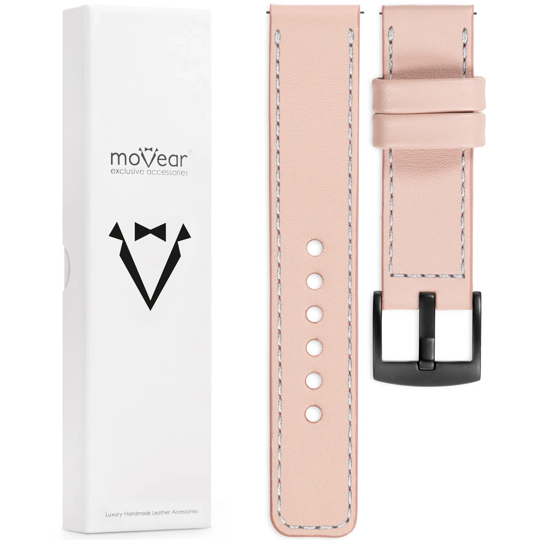 moVear Prestige C1 20mm Leather strap for Samsung Galaxy Watch 7 / 6 / 5 / 4 / 3 & Pro / FE / Classic / Active | Flesh pink, elegant Silver stitching