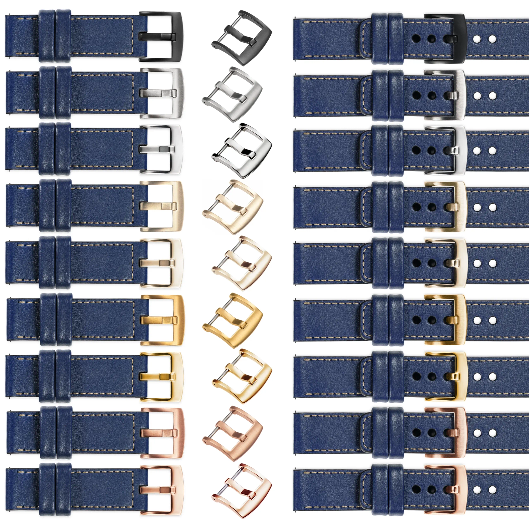 We make watch straps in many different configurations. If the default buckle (Golden) needs to be changed to a different color - we offer the following options: