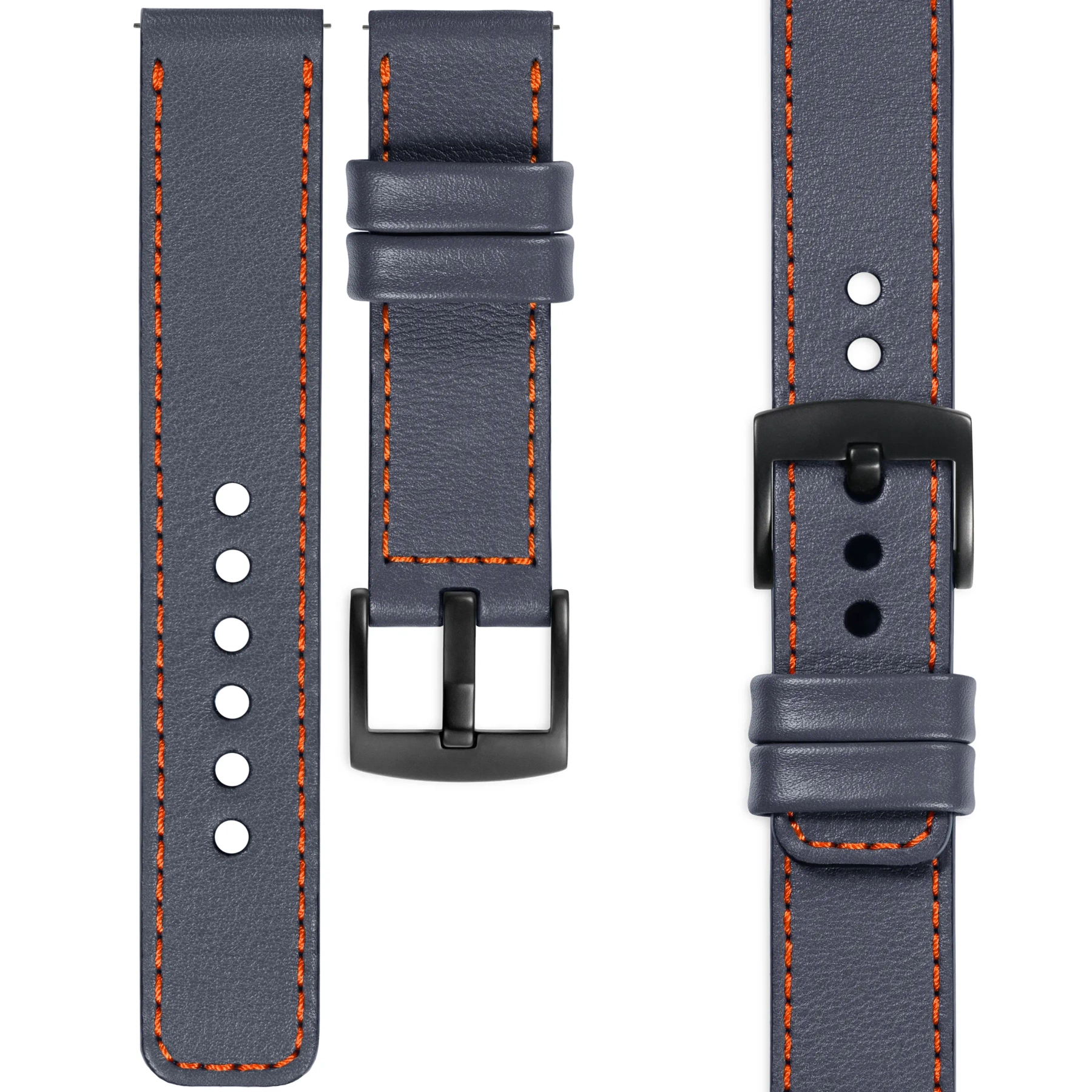 moVear Prestige C1 20mm Leather strap for watch / smartwatch | Steel gray, elegant Dark Orange stitching