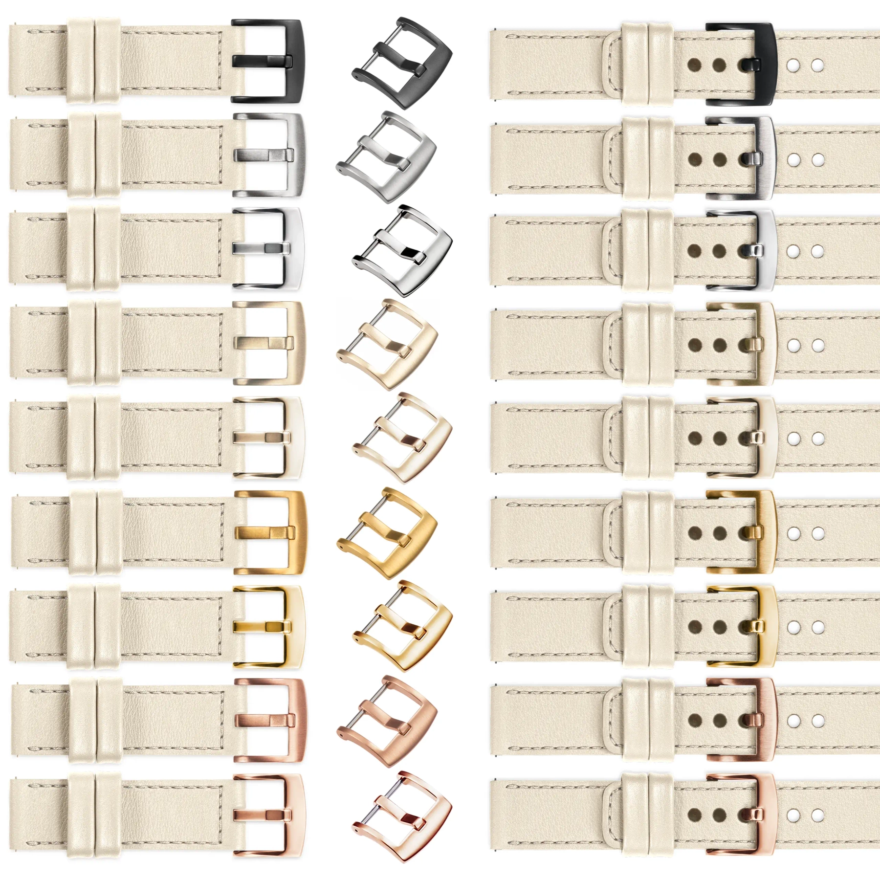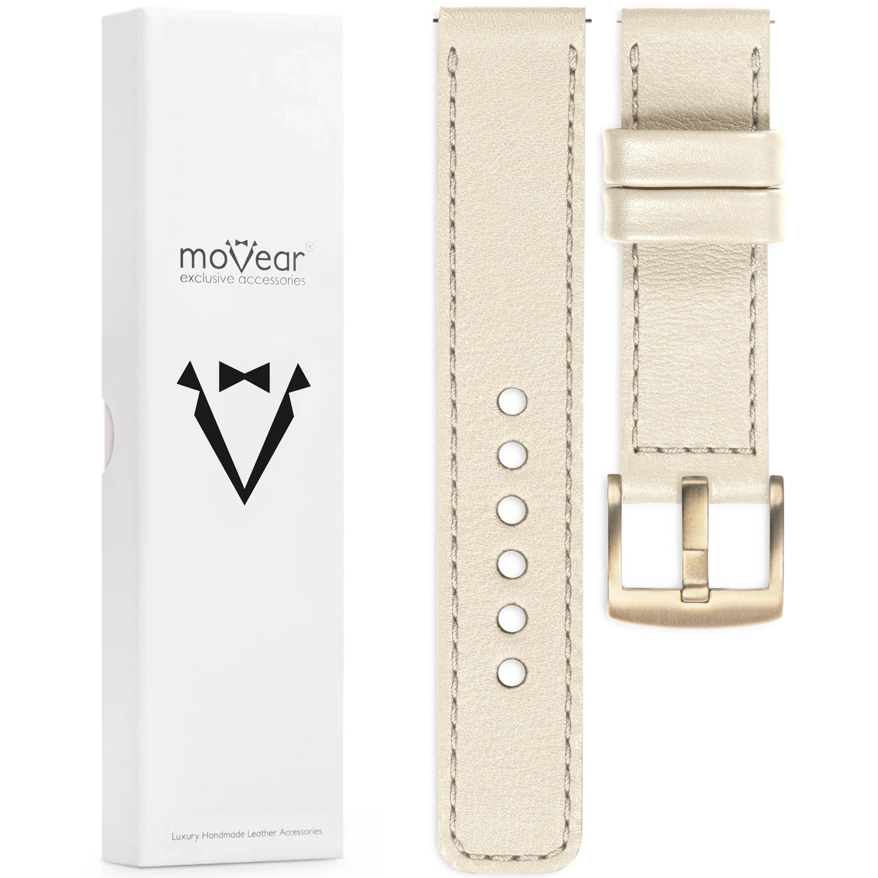moVear Prestige C1 20mm Leather strap for Samsung Galaxy Watch 7 / 6 / 5 / 4 / 3 & Pro / FE / Classic / Active | Nude, elegant Beige stitching
