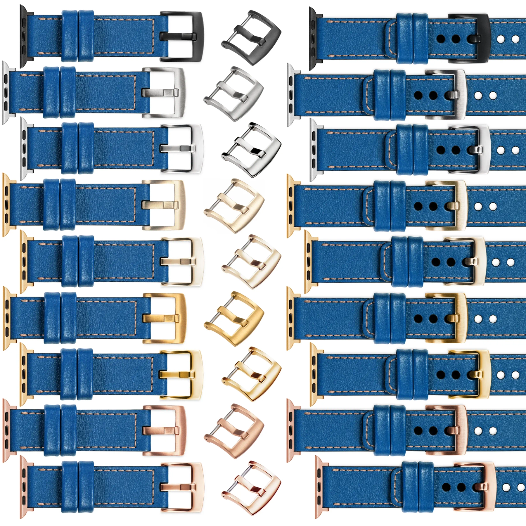 moVear Prestige C1 22mm Leather strap for Apple Watch 10 / 9 / 8 / 7 / 6 / 5 / 4 / SE (42/41/40mm) | Blue, elegant Rose gold stitching